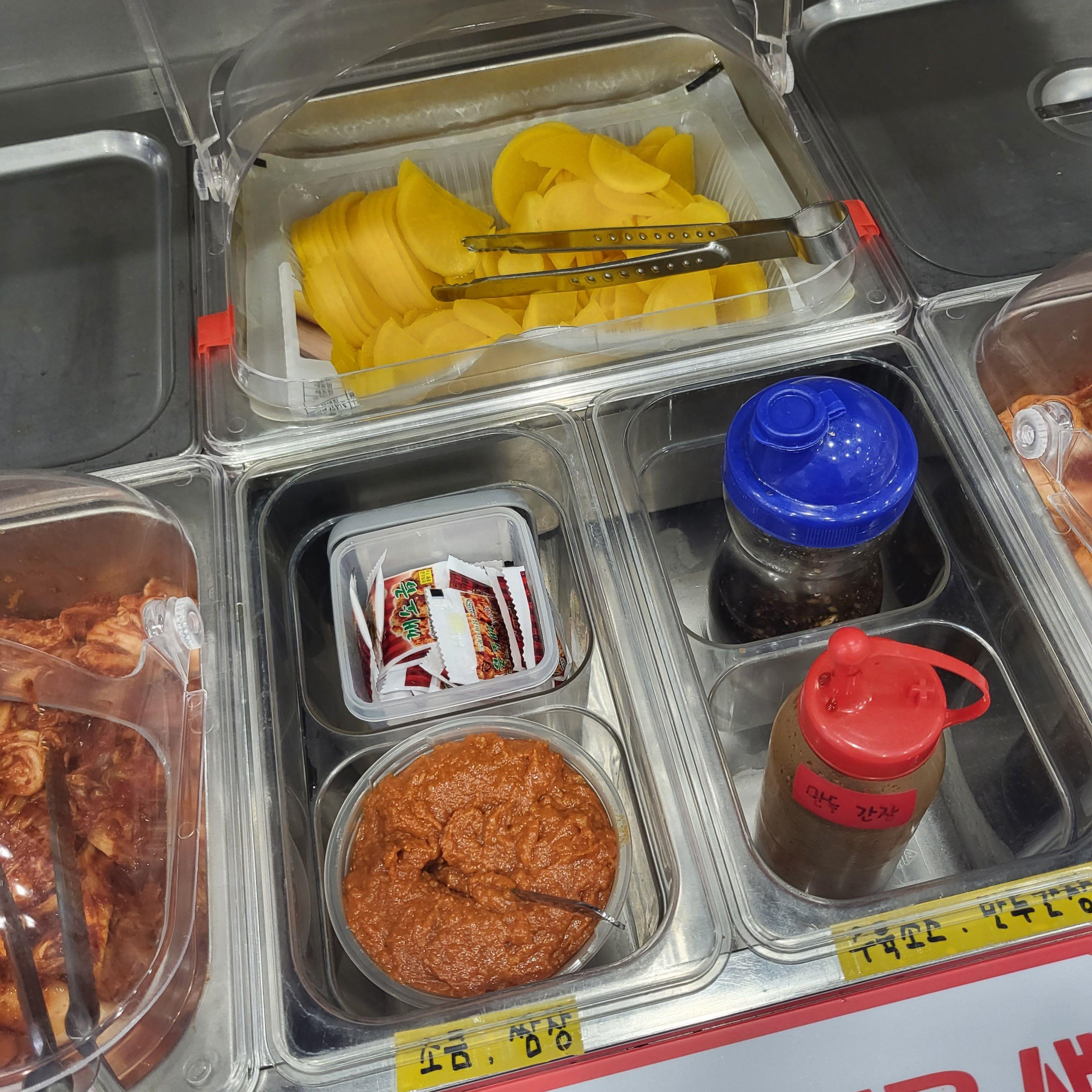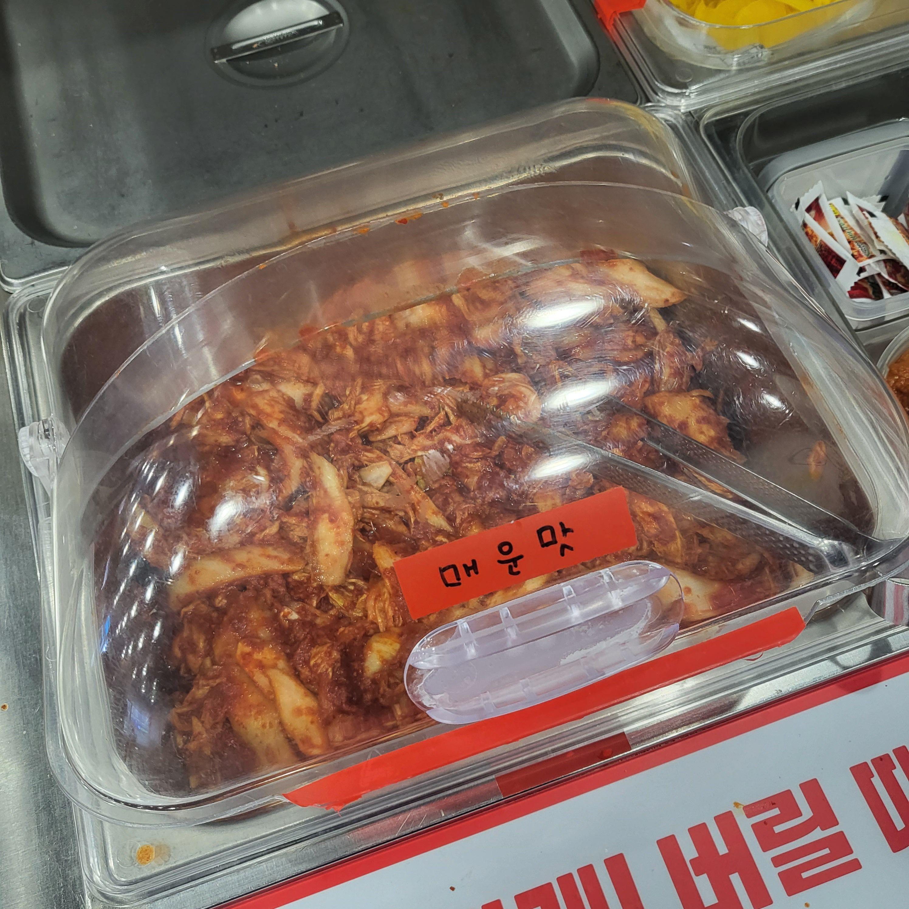 매운맛과 순한 맛 김치는 따로 표기가 되어있어요. 그 외에 수육 소스, 단무지 등 다른 사이드 음식들도 담아갈 수 있어요.