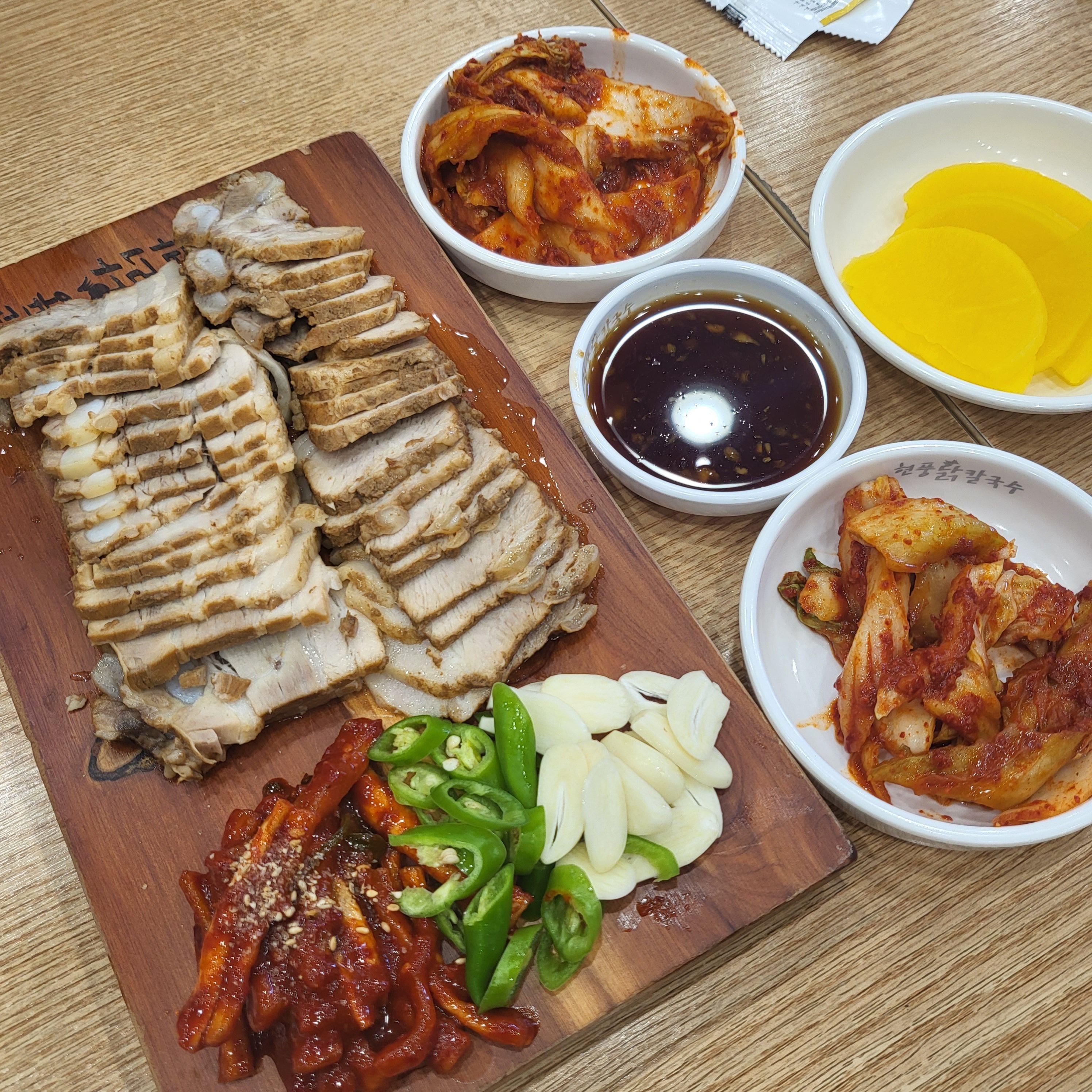 한방수육 (21,000원) - 닭칼국수보다도 수육이 먼저 나왔어요. 1시 21분에 키오스크로 주문 후 28분에 수육 도착. 수육 하니까 또 수육 맛집이 생각이 나네요. 그건 아직 포스팅 못했는데 조만간 해보도록 할게요.