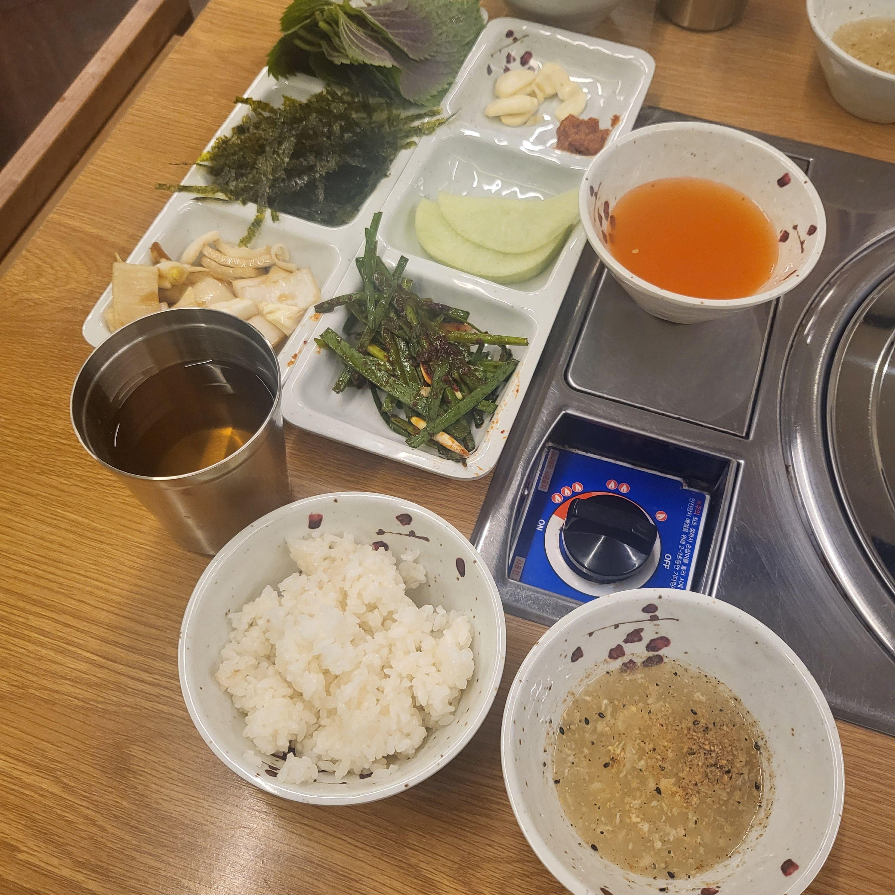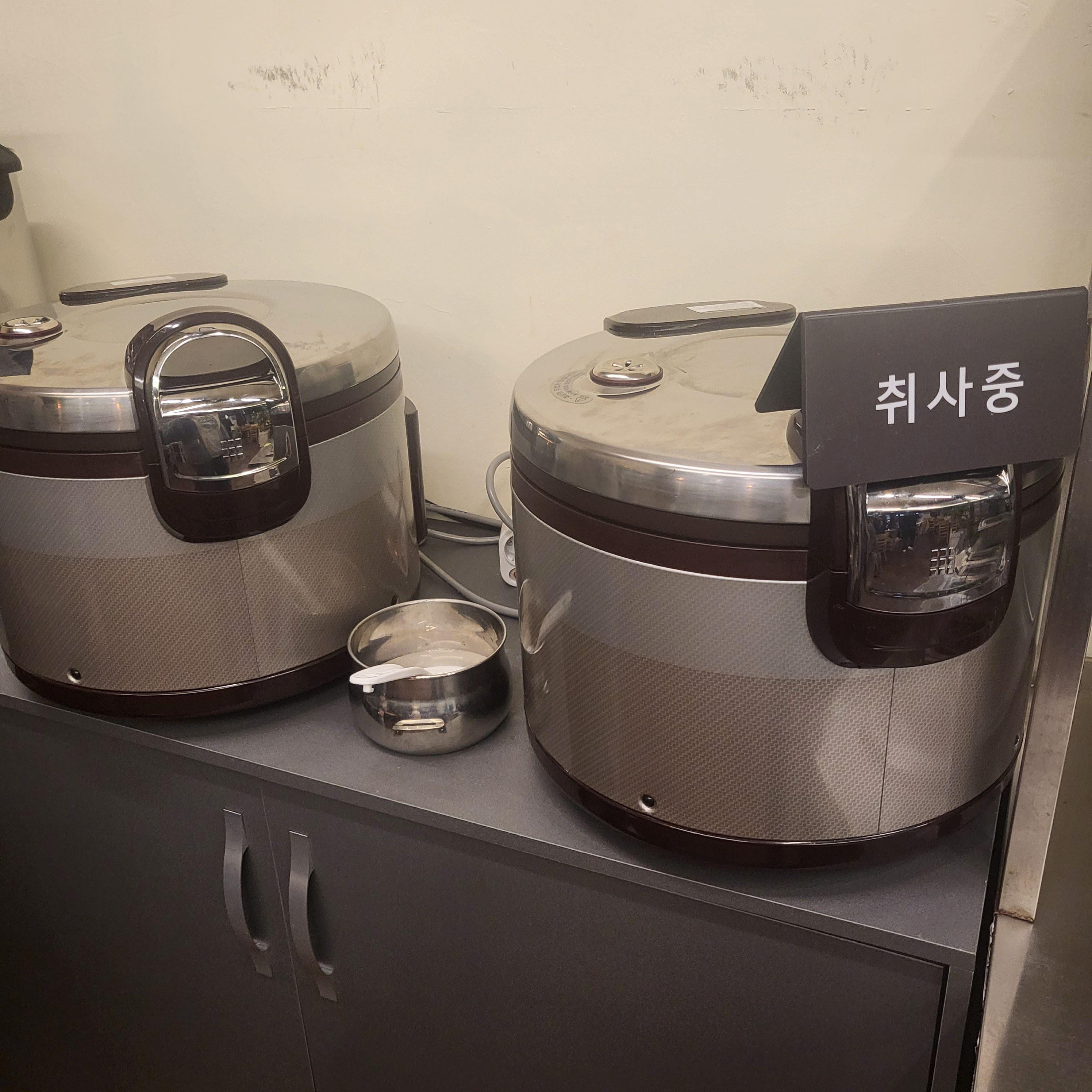 그리고 밥솥도 두 개나 있는데 밥도 무료예요!!! 드실 만큼 퍼가시면 된답니다.