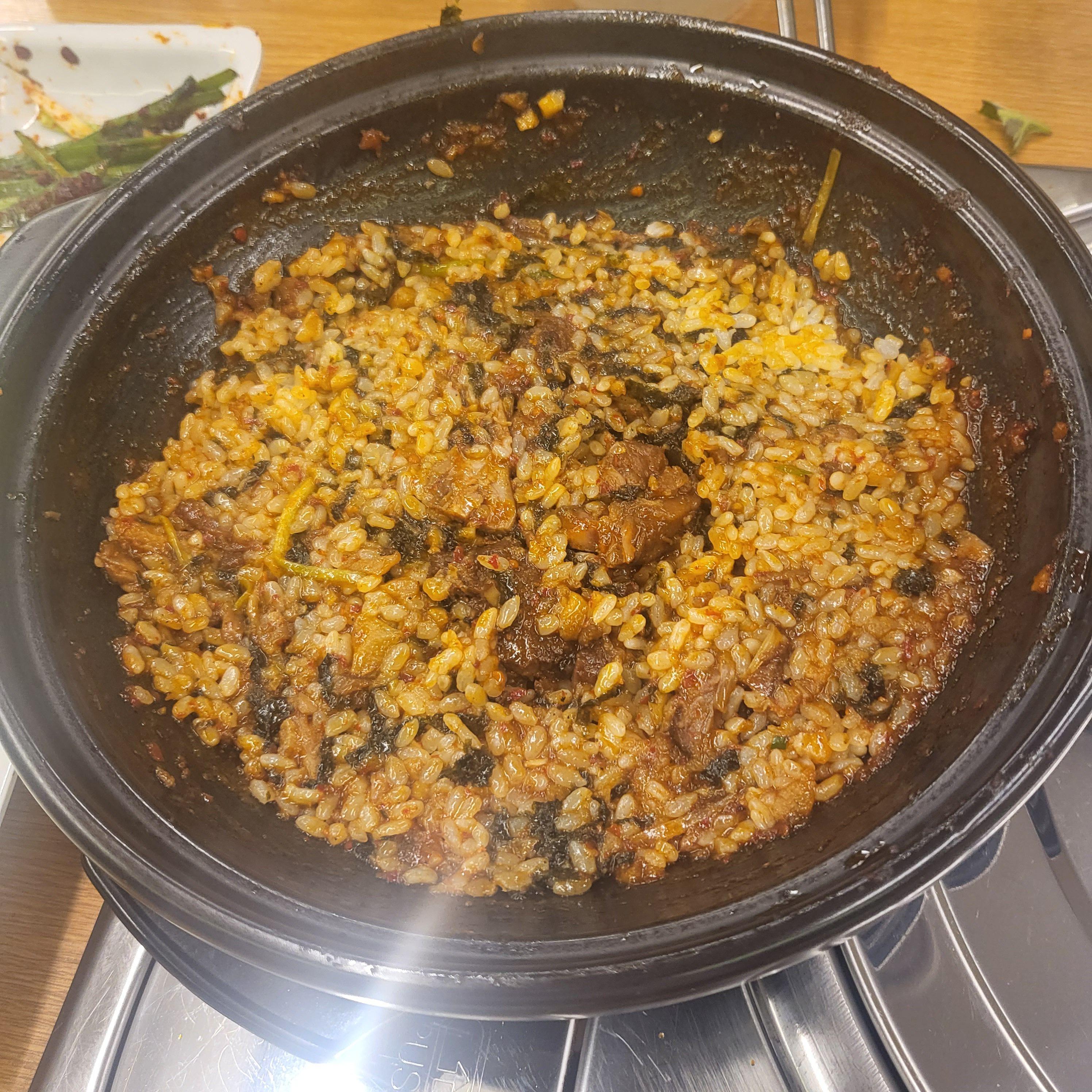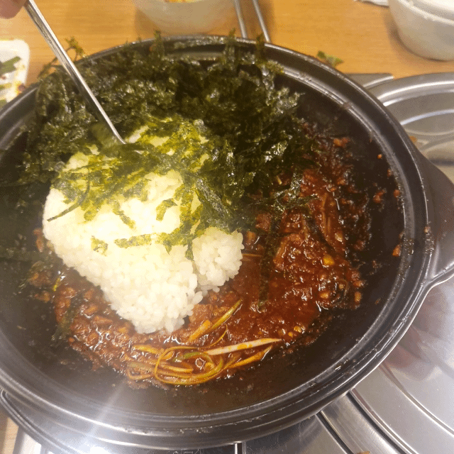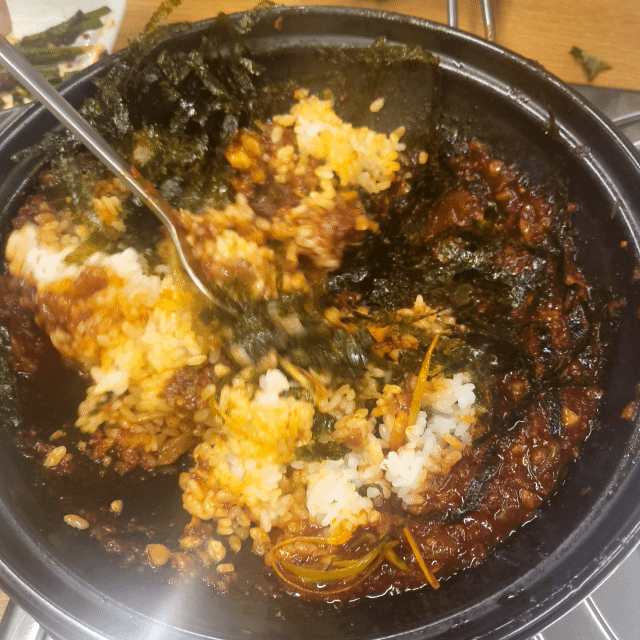 그렇게 어느정도 먹고 나서는 밥이랑 김가루를 가져와서 비벼먹었어요.