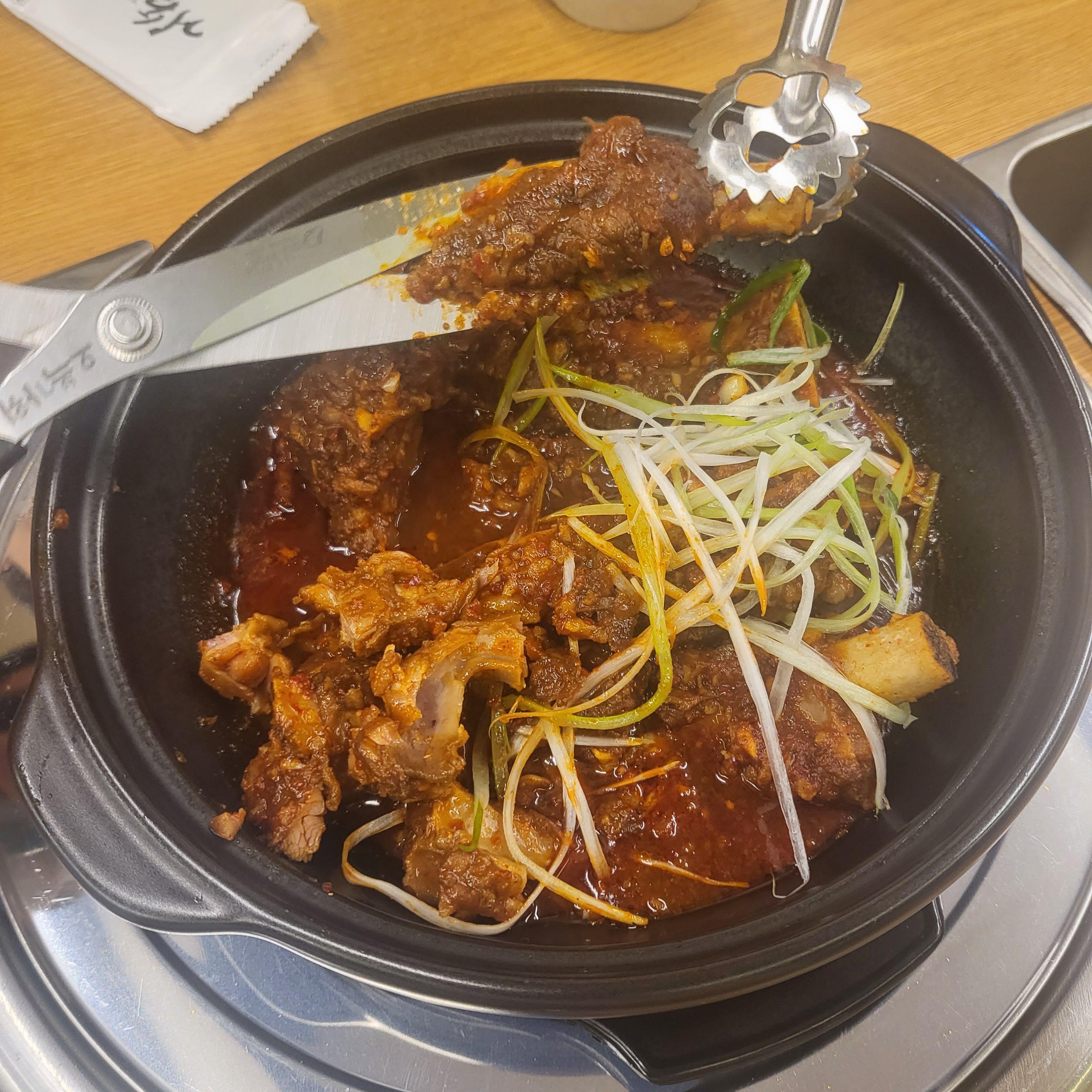 그리고 갈비찜 등장! 갈비찜 2인분에 맵기는 1.5단계로 조금 매운맛으로 했어요. 양은 작아 보였는데 정말 충분하더라고요. 전혀 적은 게 아니었어요. ㅎㅎ
