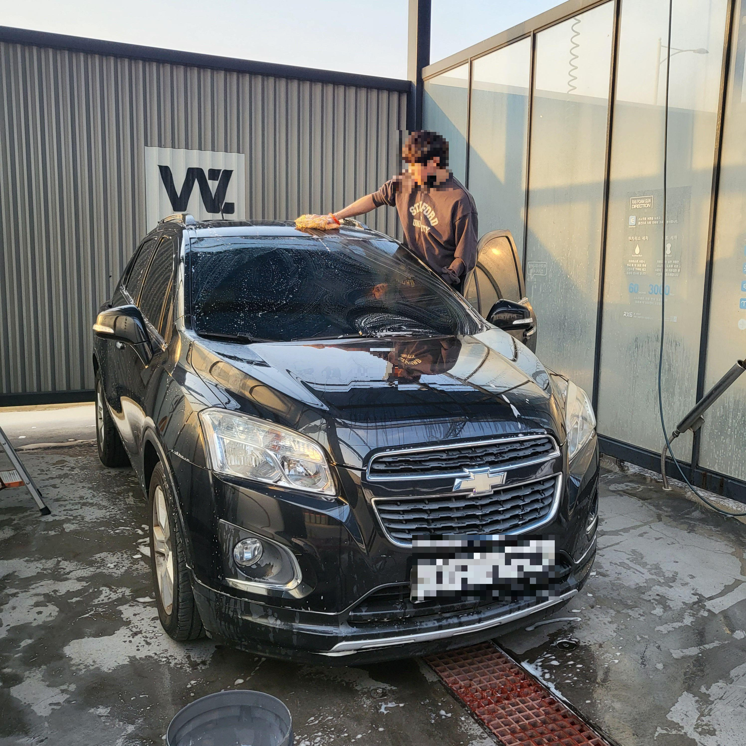 쓱싹쓱싹! 저희는 세차용품이 있어서 가져온 세차용품으로 차 외관을 닦아줬어요. 여기저기 구석구석 꼼꼼히...