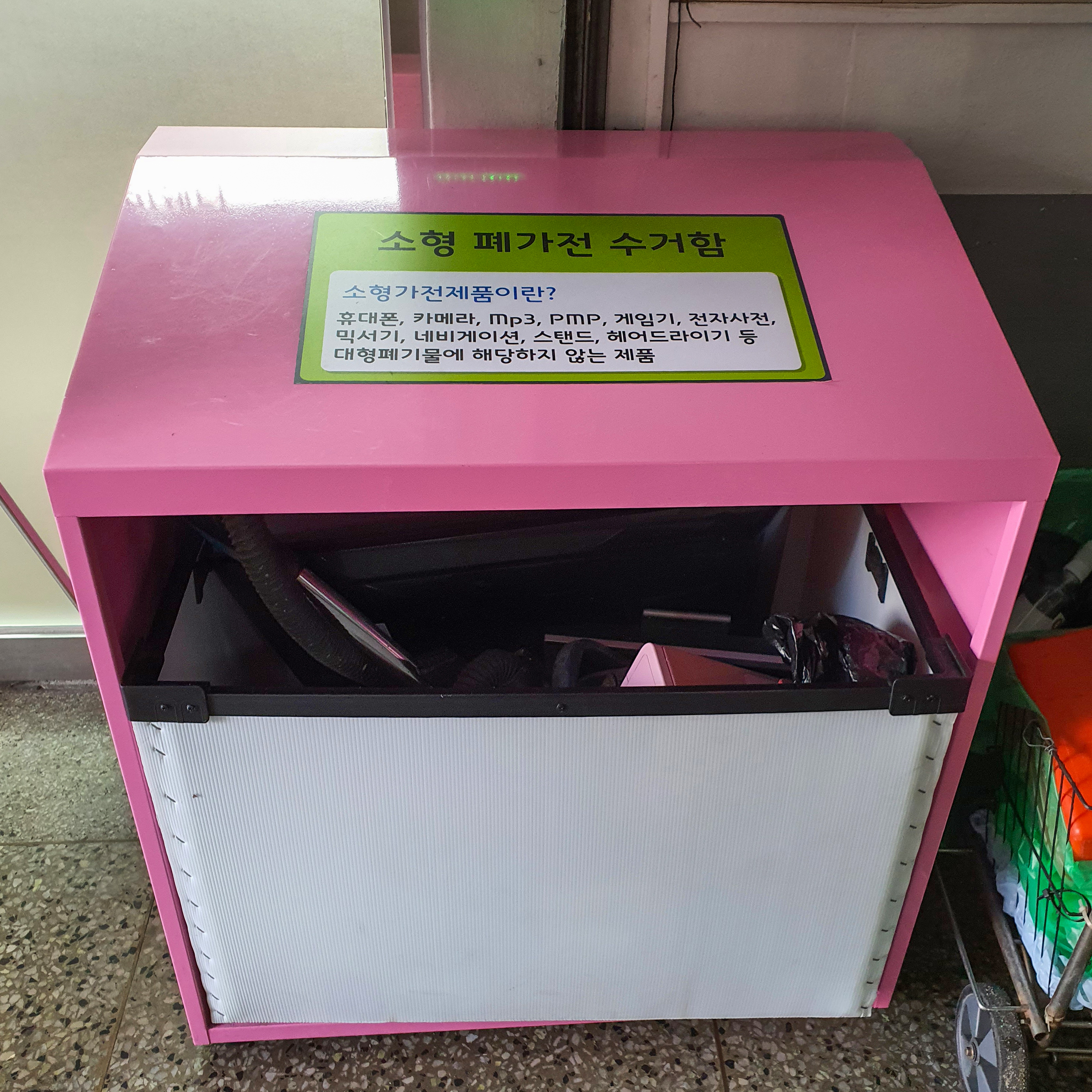 행정복지센터에 가시면 이런 폐가전 수거함이 있어요. 혹시 찾기힘드시다면 복지센터에 문의하시면 될거예요.