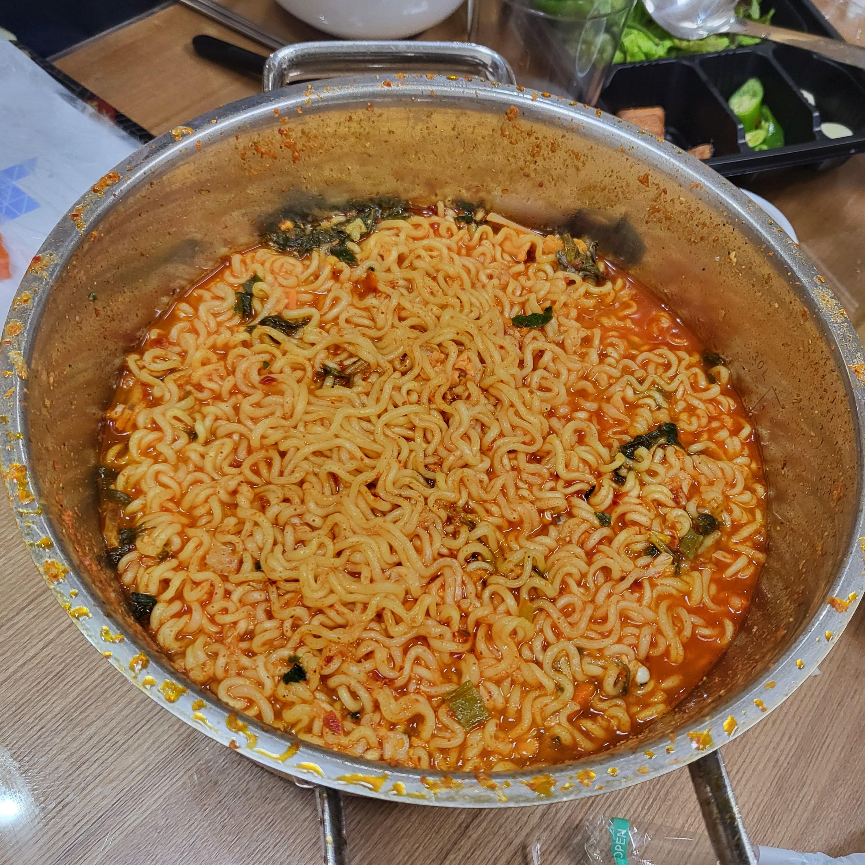 그리고 매운탕거리도 같이 싸주셨는데 매운탕거리에도 송어살이 되게 많았어요. 매운탕 사진을 못 찍었는데, 매운탕을 얼추 다 먹고 남은 매운탕에 라면도 끓여서 뚝딱 했네요. 정말 배부르게 먹었어요.