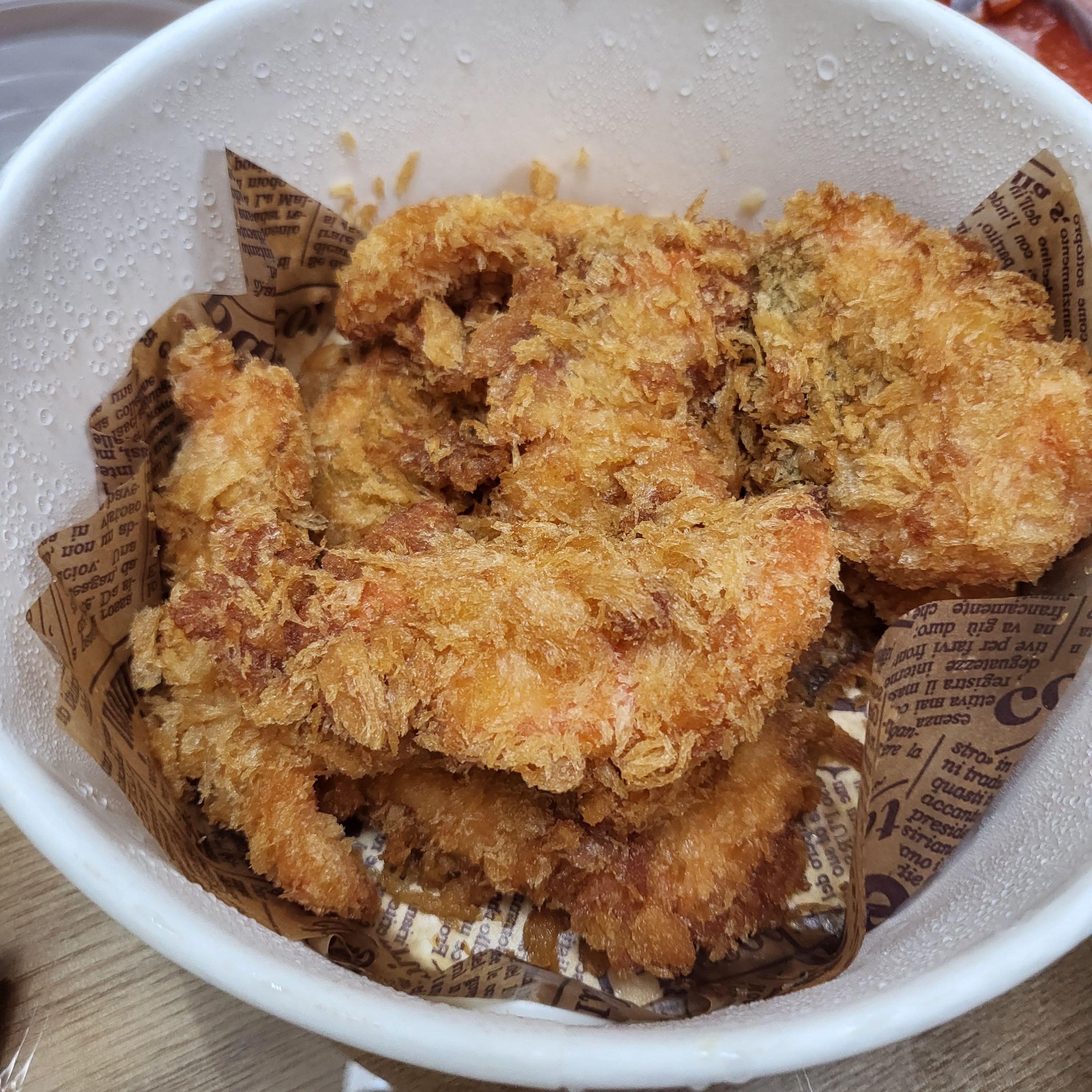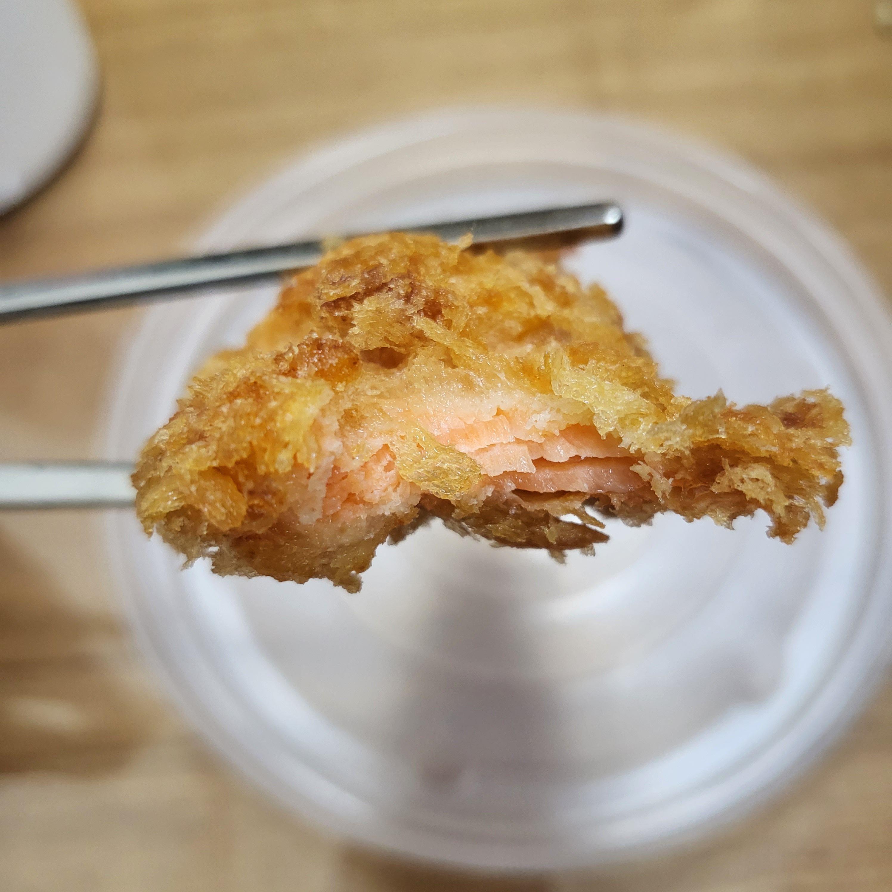 송어회튀김도 같이 주문했었는데 점심즈음에 포장하고 숙소에 둔 뒤, 저녁에 먹어서 튀김이 조금 눅눅해졌어요. 안에 물방울도 많이 맺혔죠. 튀김으로 말고 송어구이로 먹었으면 더 맛있었을 것 같아요. 익힌 송어도 되게 맛있더라고요.