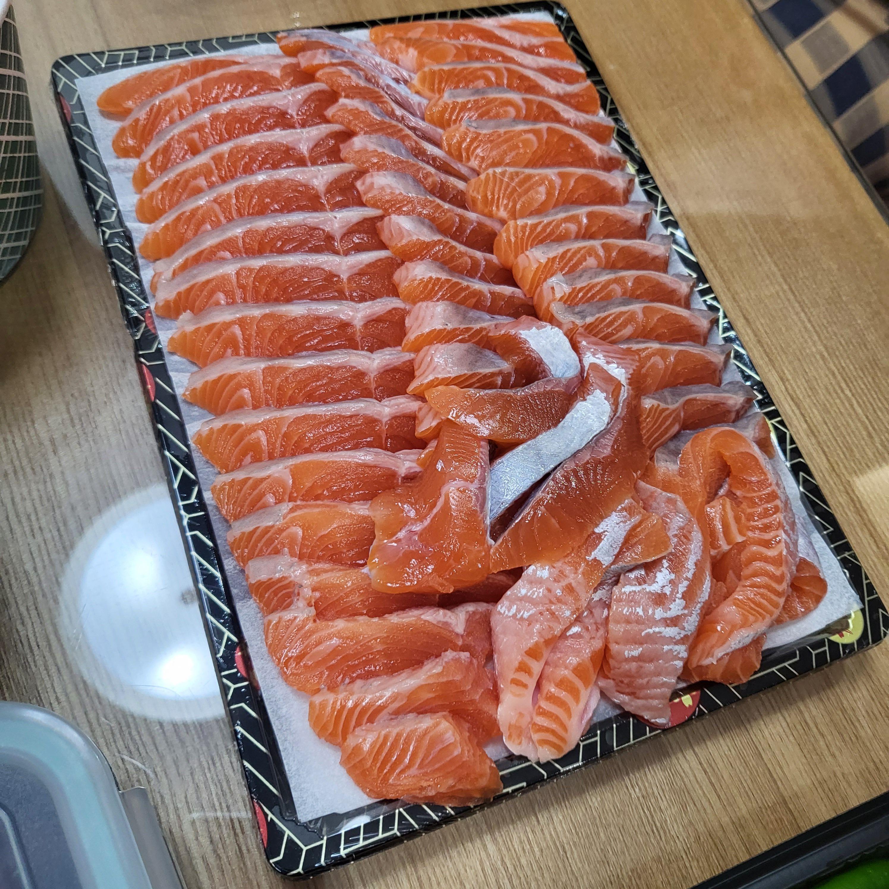 이렇게가 송어회 3인분이에요. 연어를 정말 좋아하는데 송어도 연어과라고 하네요. 송어회도 연어회처럼 생기긴 했어요. 연어랑 비슷하지만 연어랑은 확실하게 달랐어요. 쫄깃한 식감을 좋아하는데 송어는 쫄깃보다는 부드러운 식감이었어요. 탱글한 느낌이 없달까?