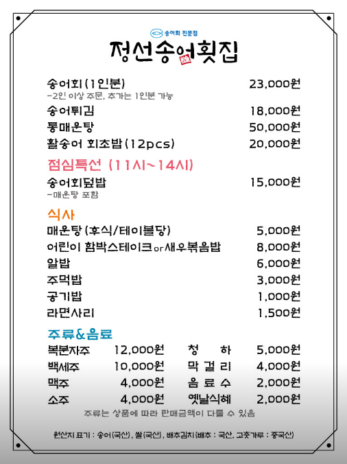 정선송어횟집은 강원도 정선군 고한읍에 있는 송어회 전문점이에요.
