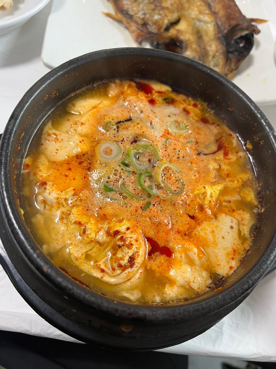 순두부찌개와 고등어구이예요. 고등어 크기도 큼직해서 혼자는 다 못 먹고 같이 나눠먹었어요. 순두부찌개도 무난했고, 반찬들도 다 무난했어요. 무난하게 한 끼 먹기에 너무 좋은 백반 정식 집이었어요. 특히나 저처럼 아침 일찍 강원도 하이원에 도착해서 아침 해결하기에 애매한 상황일 때에 엄니밥상은 새벽 5시부터 오픈하니까 아침을 먹을 수 있습니다 ^^