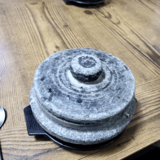 돌솥밥도 등장! 돌하르방 생각나는 돌솥밥이에요. 뚜껑까지 아주 핫하답니다. 엄청나게 뜨거워요... (당연)