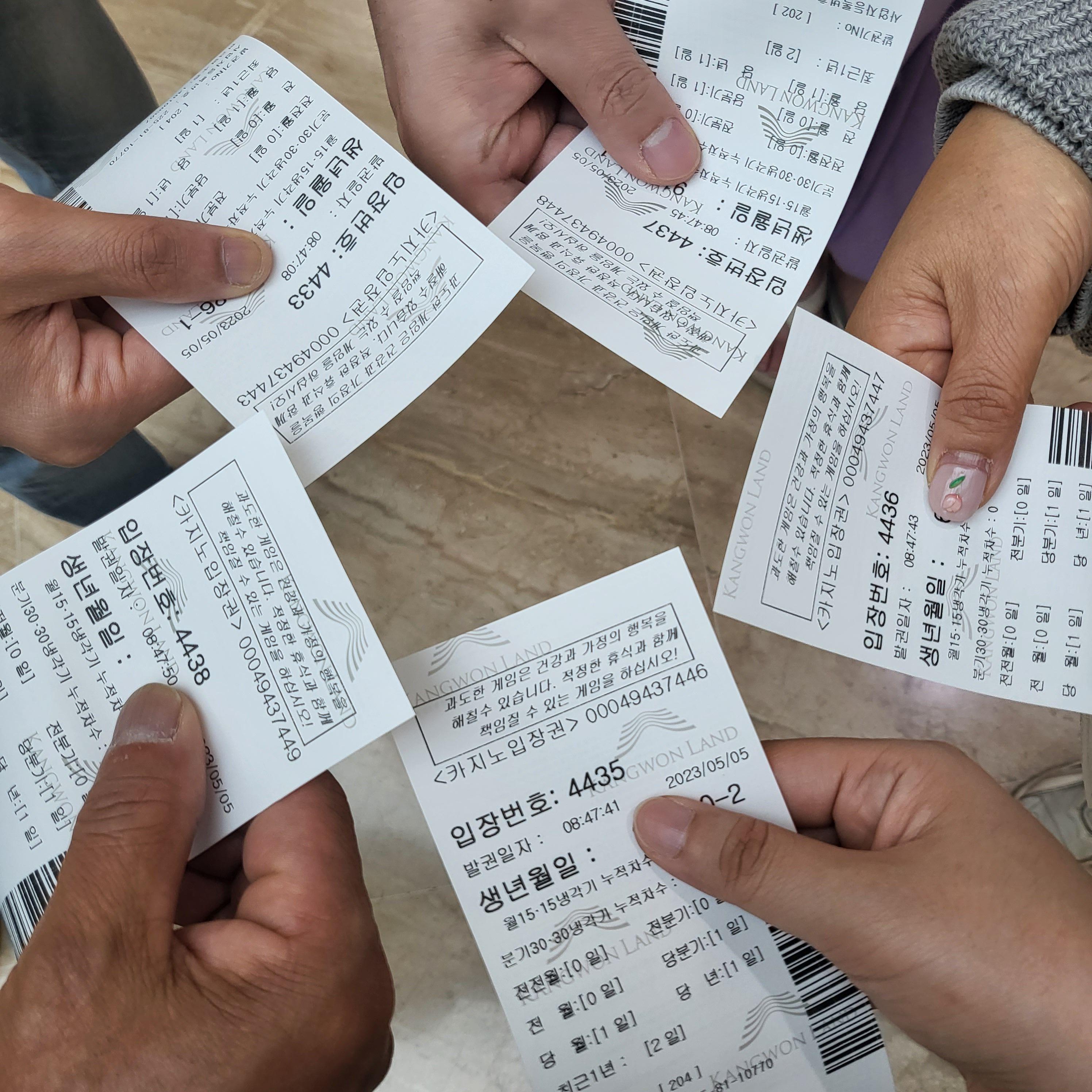 신분증 확인과 현금 9천 원을 내고 카지노 입장권 발급 완료! 이건 잃어버리면 안 돼요. 카지노 입장할 때 필요한데, 카지노에 잠깐 나왔다가 다시 들어갈 때에도 이 입장권이 있어야 한답니다.