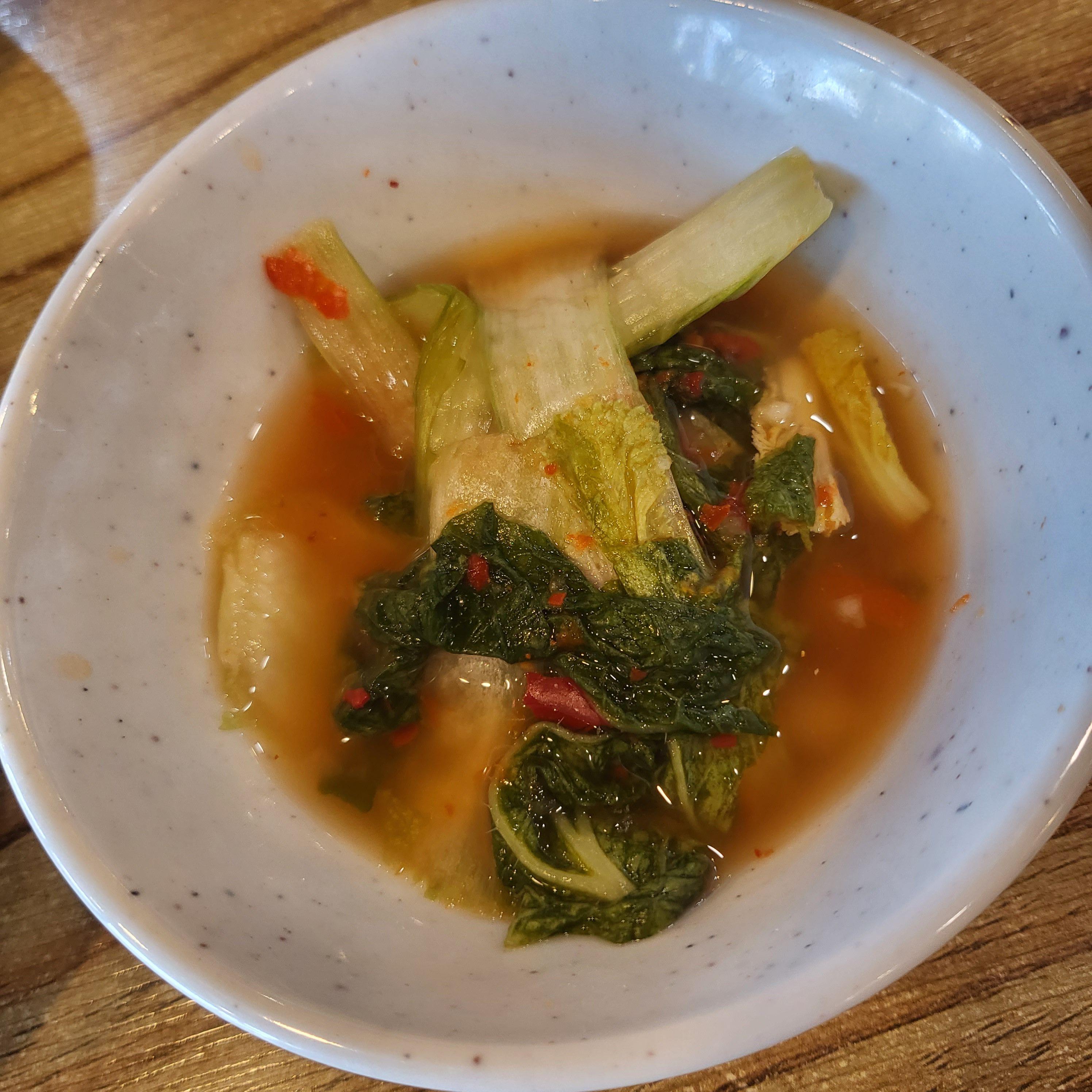 기본반찬으로는 이렇게 두 가지가 나와요. 셀프로 더 가져다가 먹을 수 있었습니다.