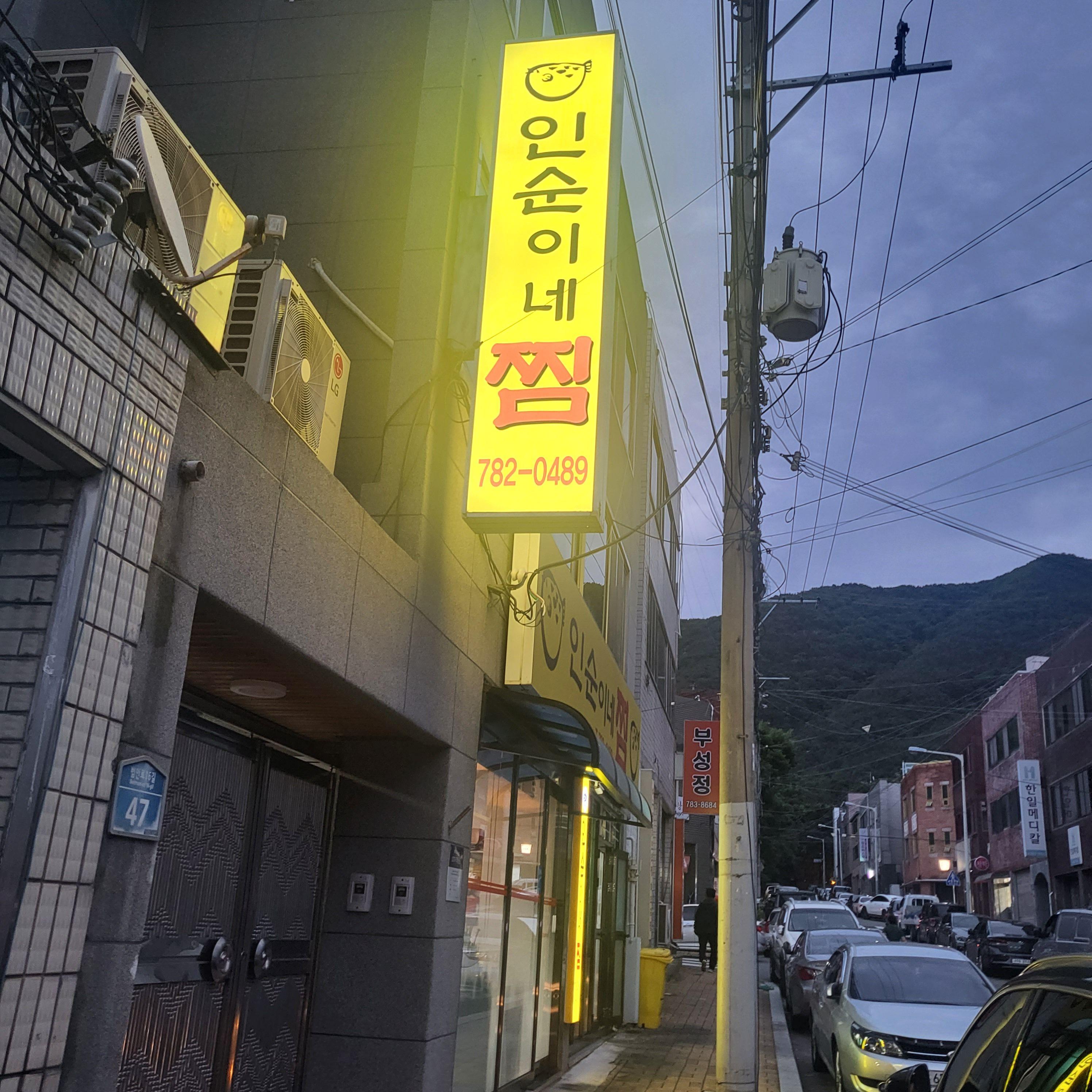 인순이네 찜은 노란 간판으로 되어있어서 멀리서도 아주 잘 보여요.