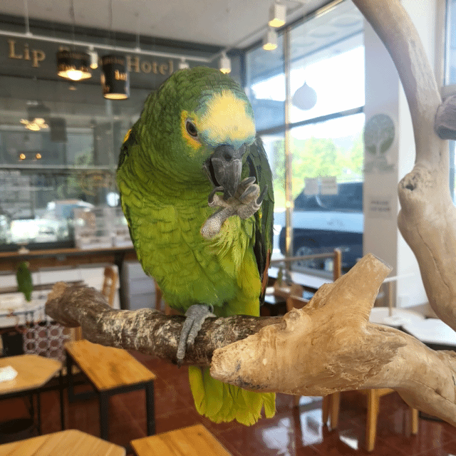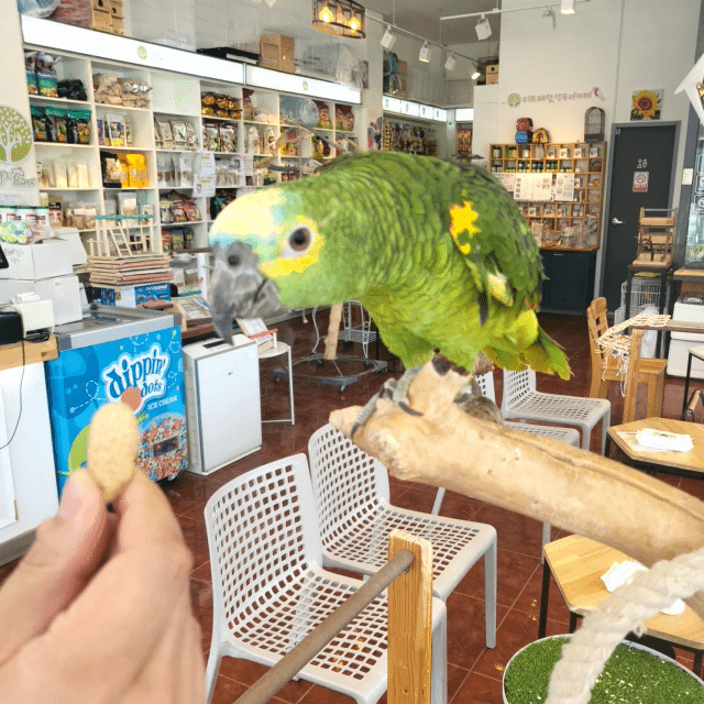 앵무새를 이렇게 가까이에서 봐 본 게 이번이 처음이라 색다른 경험이었어요.