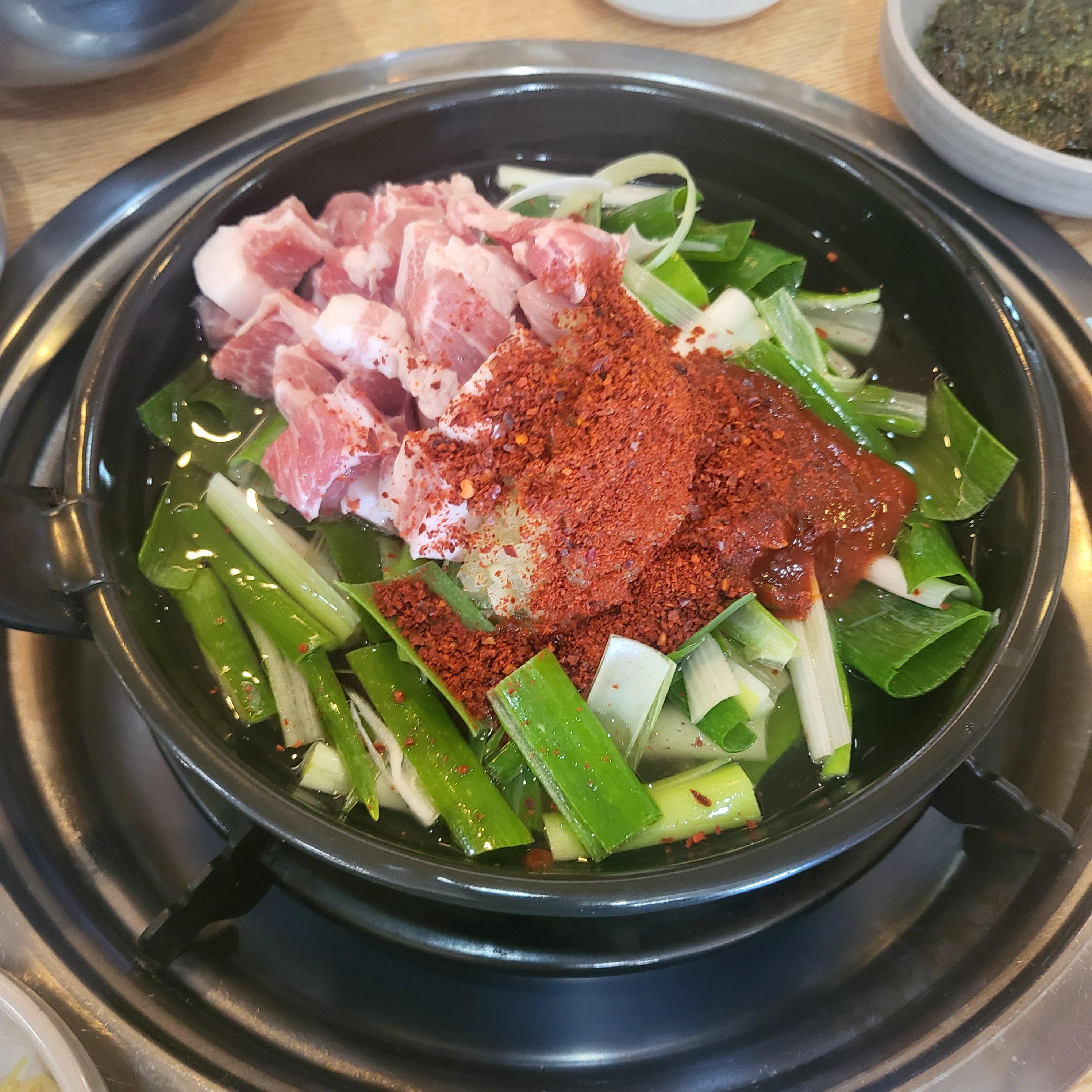 돼지짜글이는 재료만 담아져서 나오고 자리에서 끓이면 돼요.