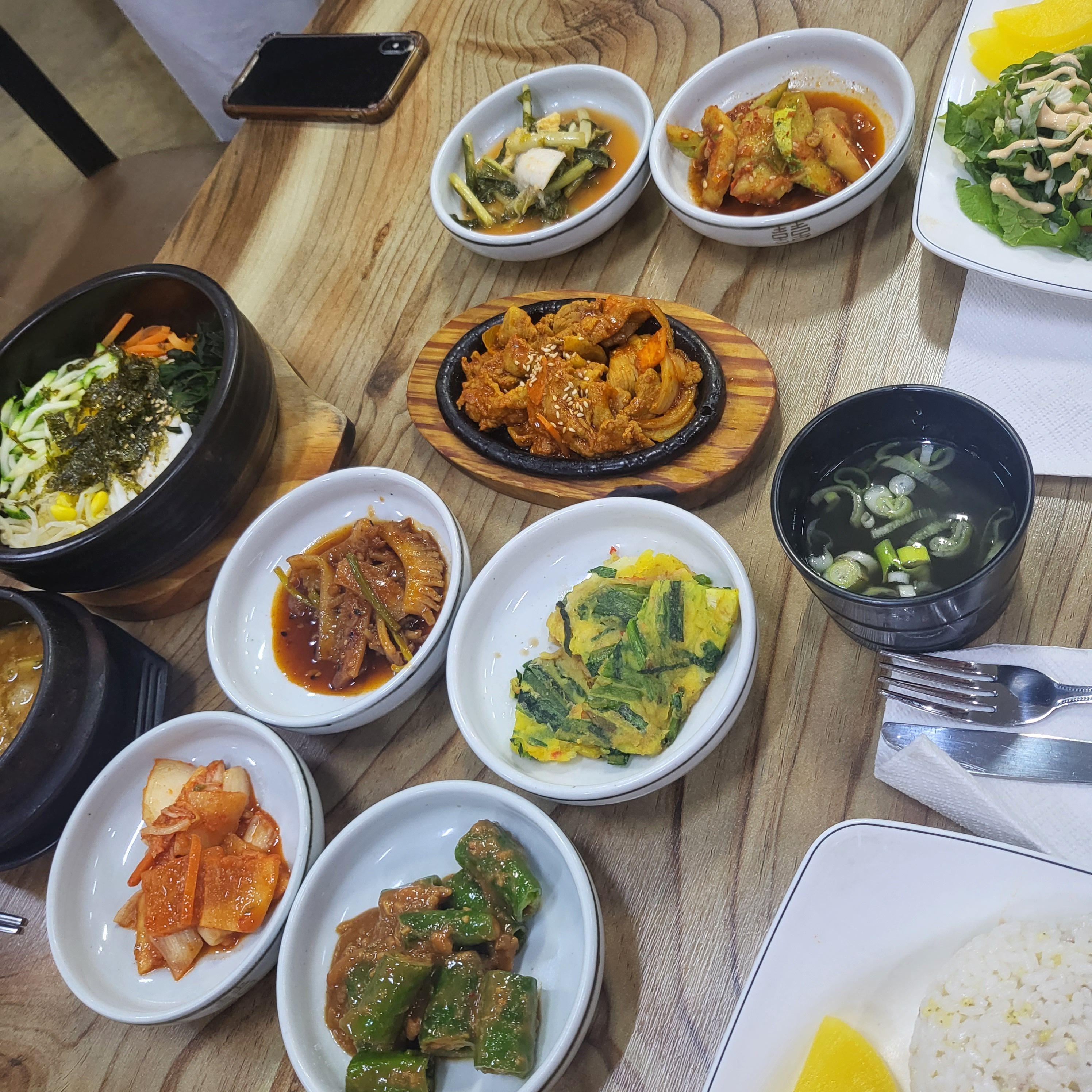 이렇게 돌솥비빔밥과 돈가스 한 상 가득 차려주셔서 너무 맛있게 먹었네요.