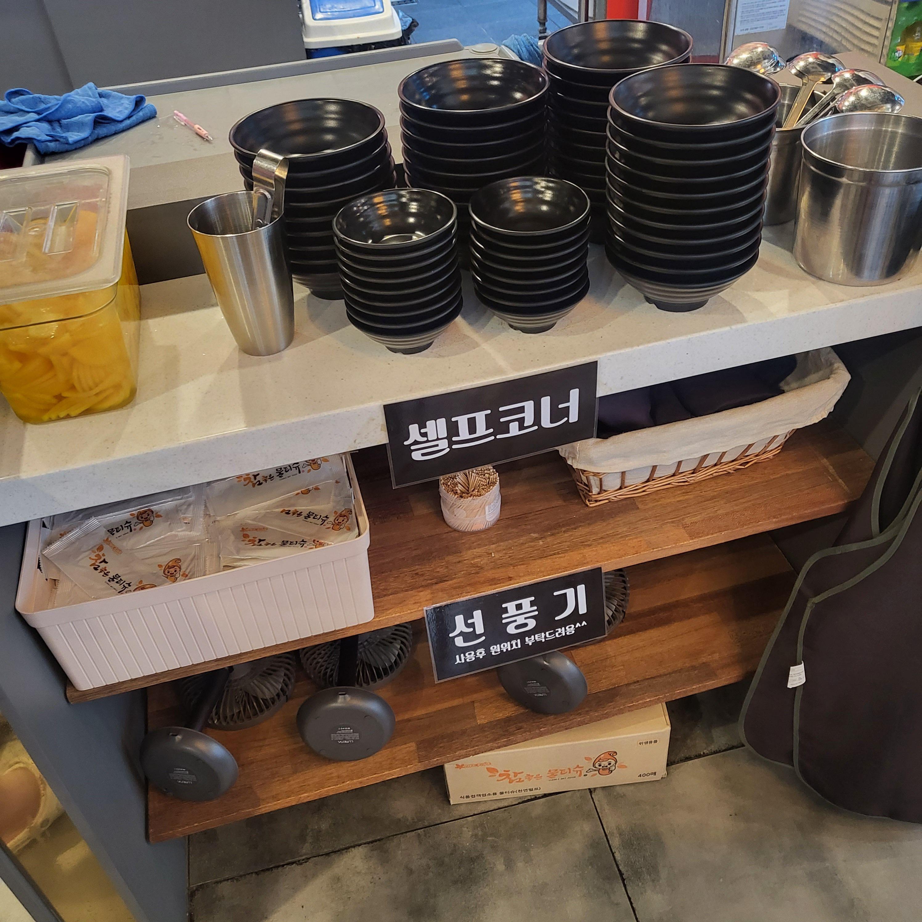 셀프코너에 단무지랑 앞접시 등이 있는데 선풍기도 있더라고요 ㅋㅋㅋㅋㅋ
