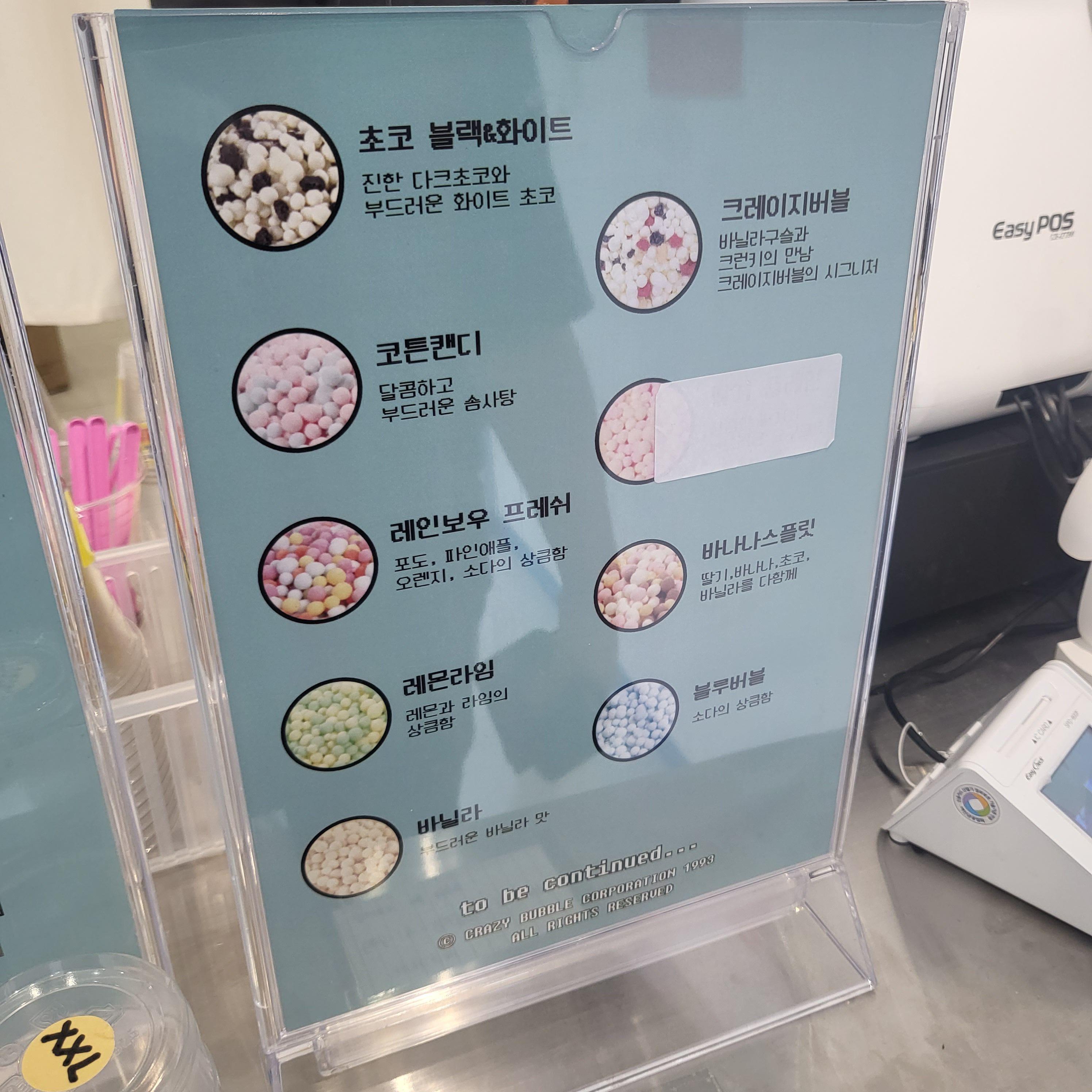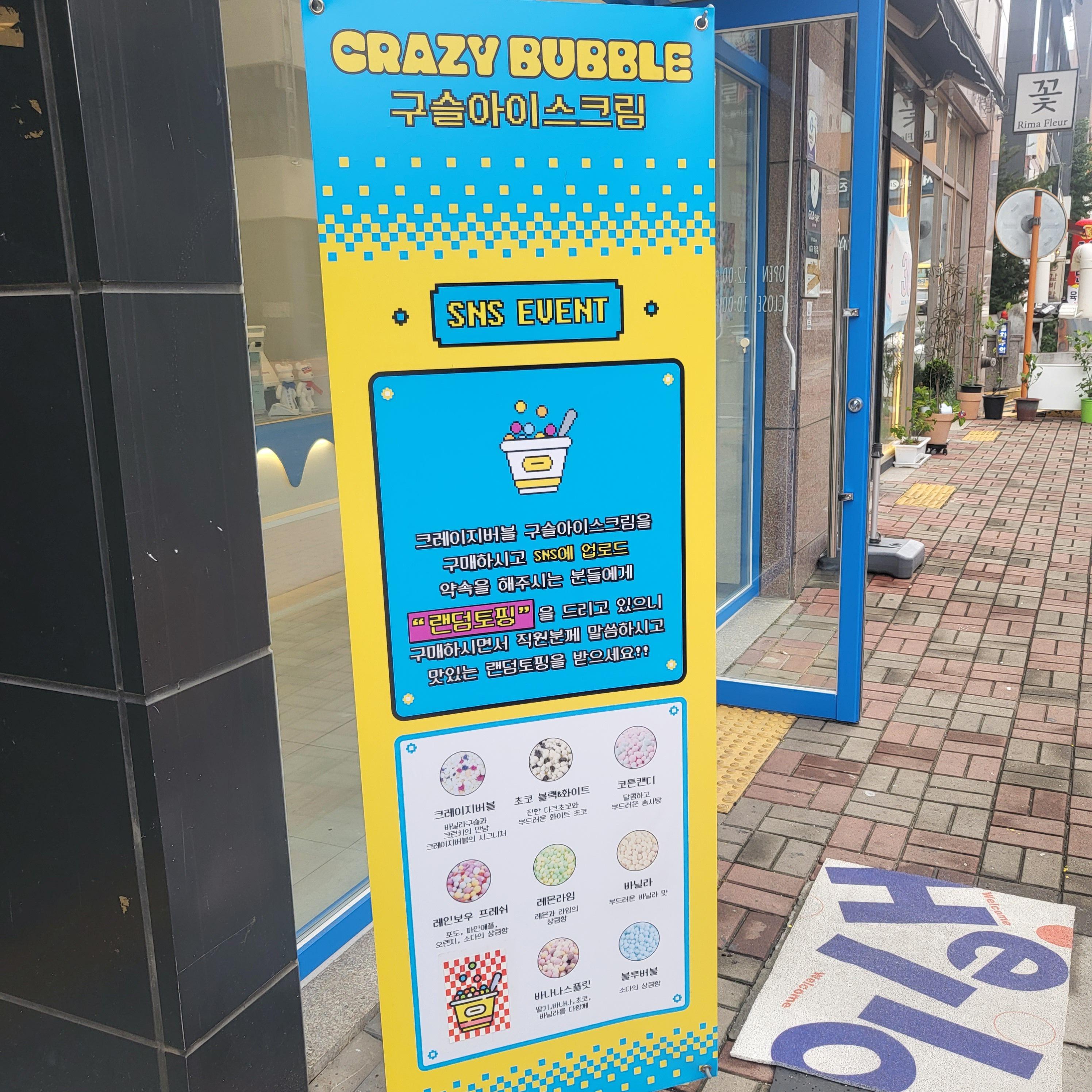 크레이지버블 메뉴판은 가게 밖, 입구에서도 찾아볼 수 있었어요.