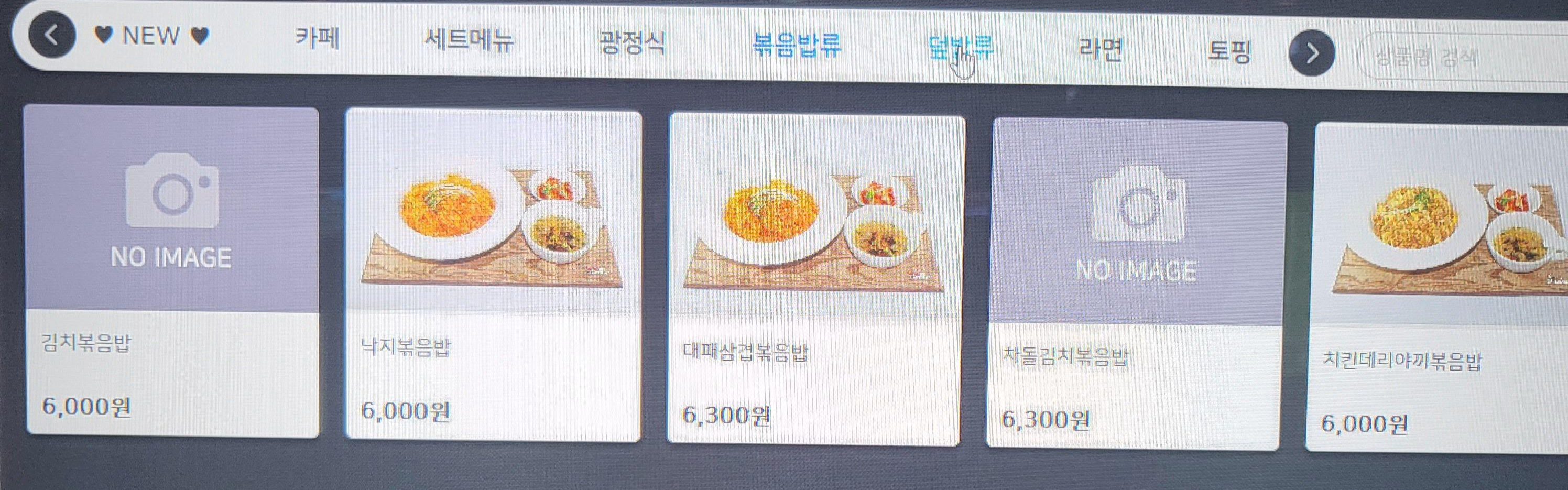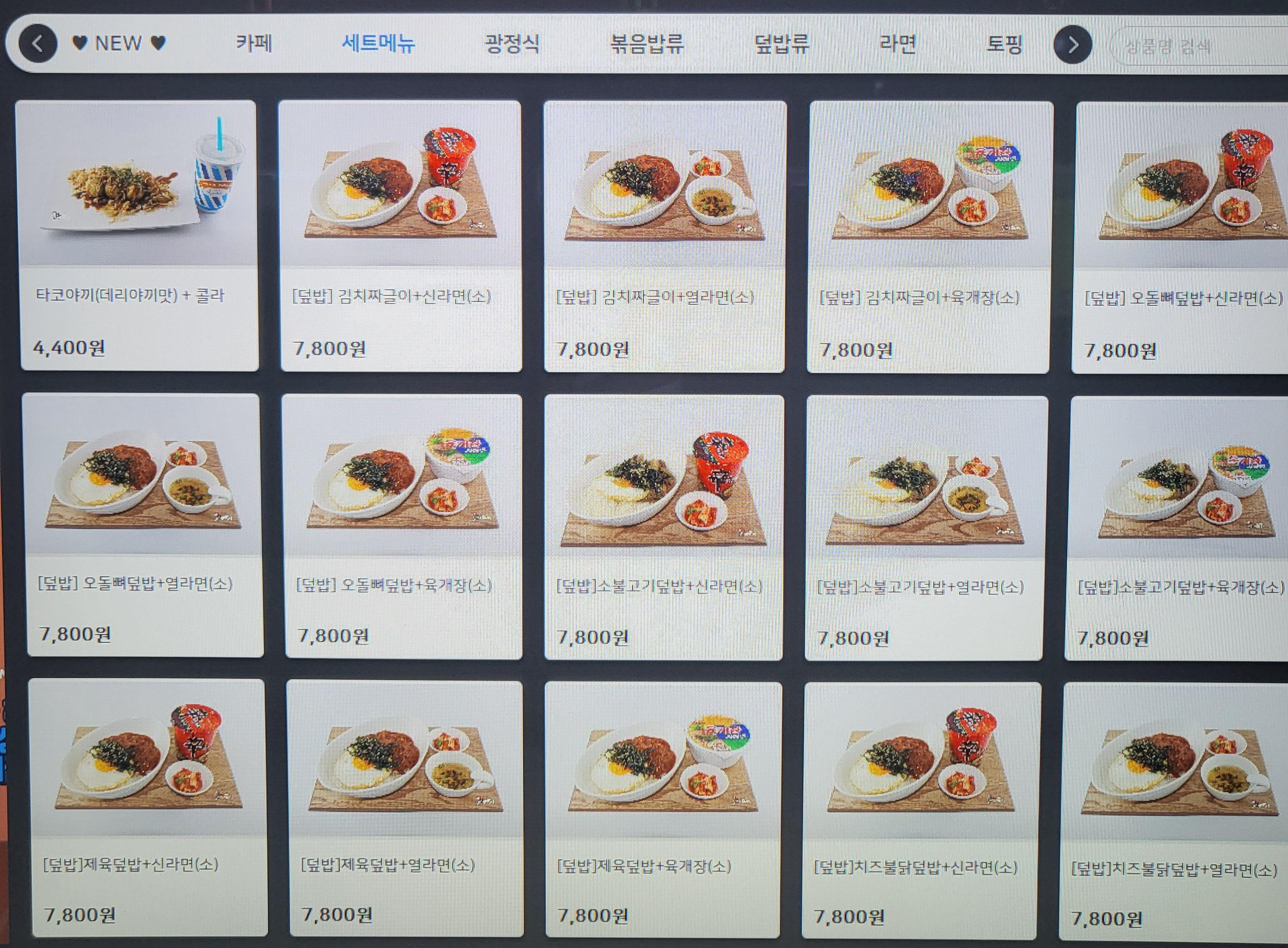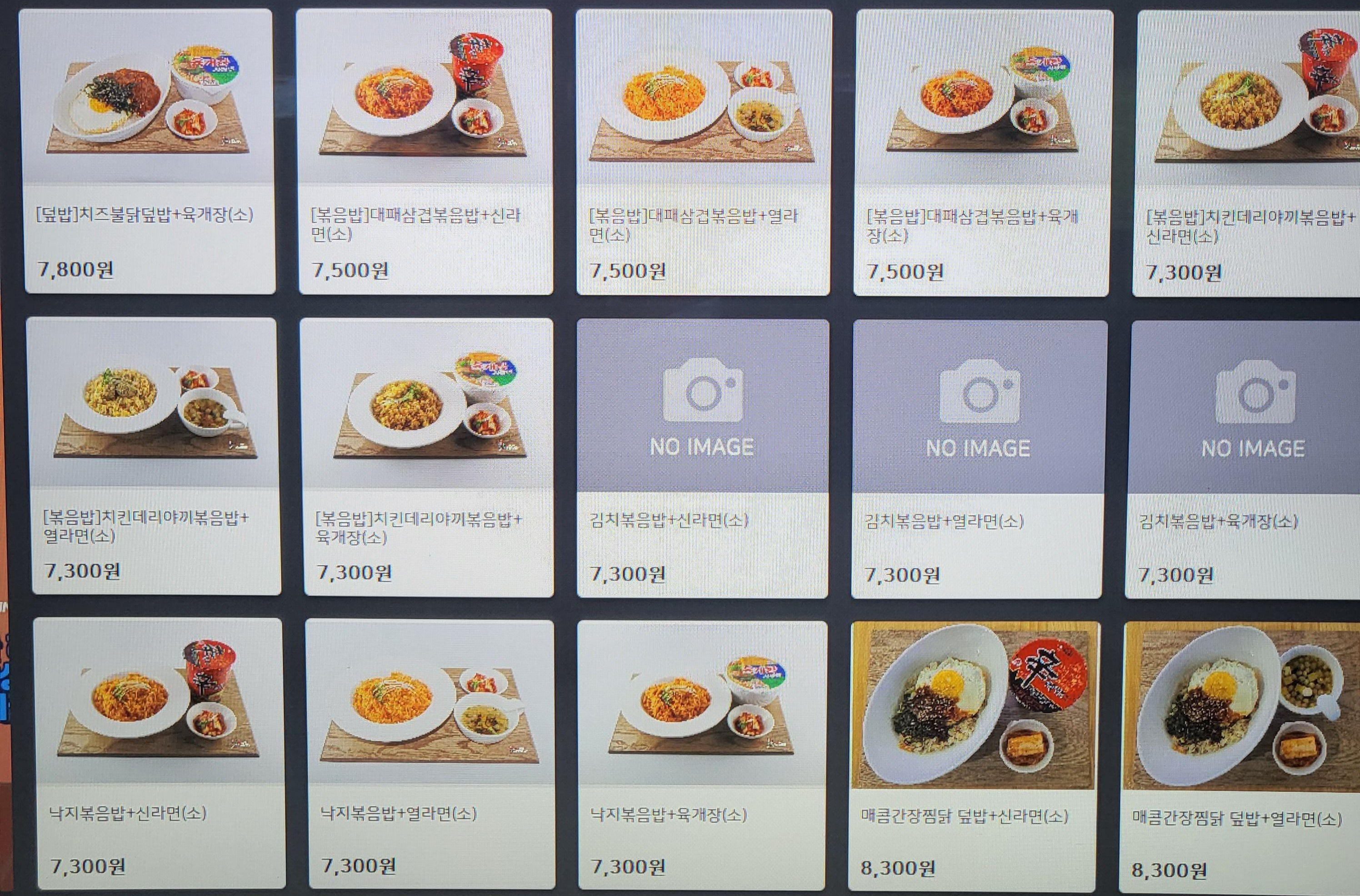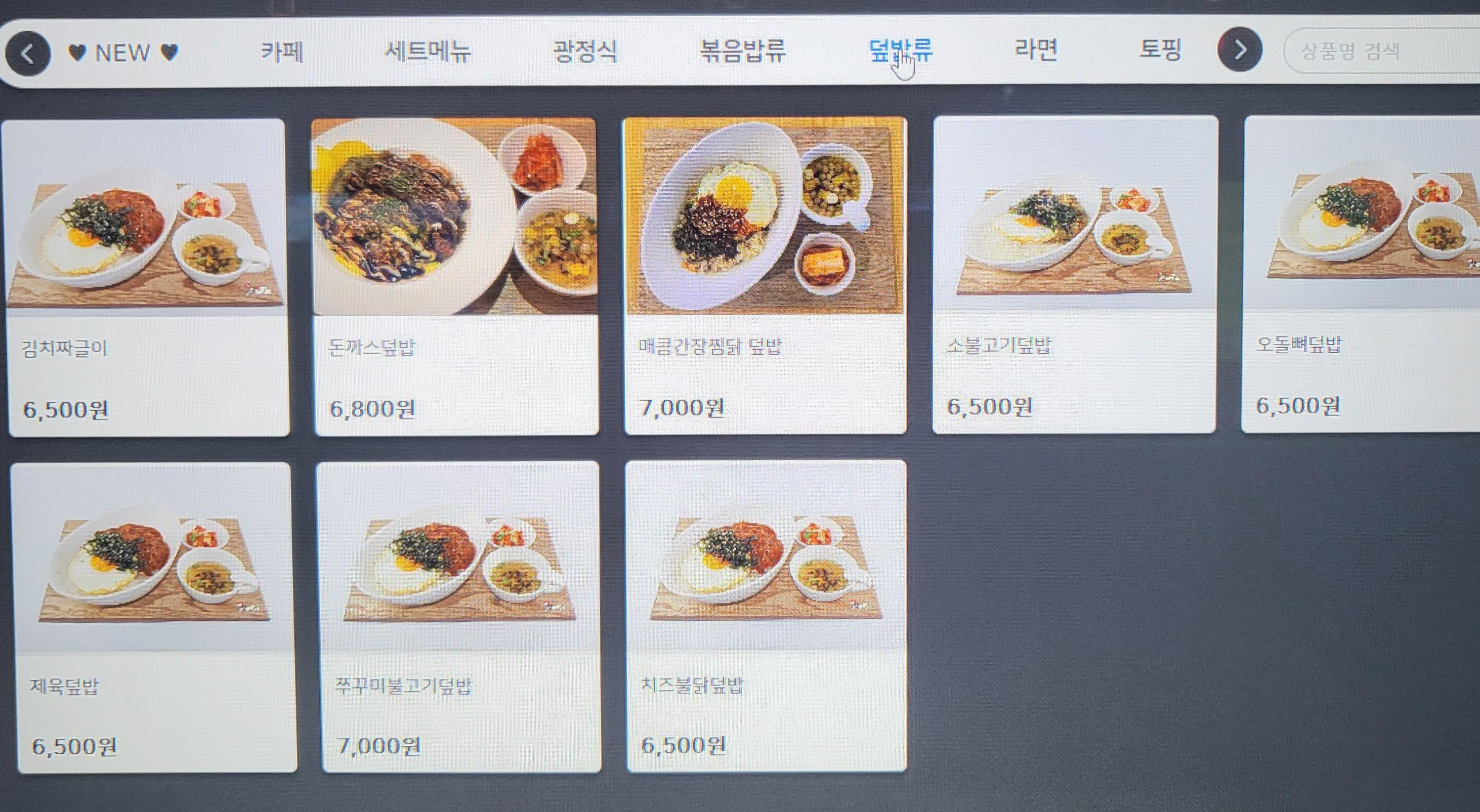 6천 원대부터 7천 원대까지, 간단하게 먹을 수 있는 덮밥, 볶음밥류도 있어요. 게임하면서 먹기에는 아무래도 숟가락으로 밥만 퍼먹을 수 있는 덮밥류와 볶음밥류가 제일 편하겠죠?