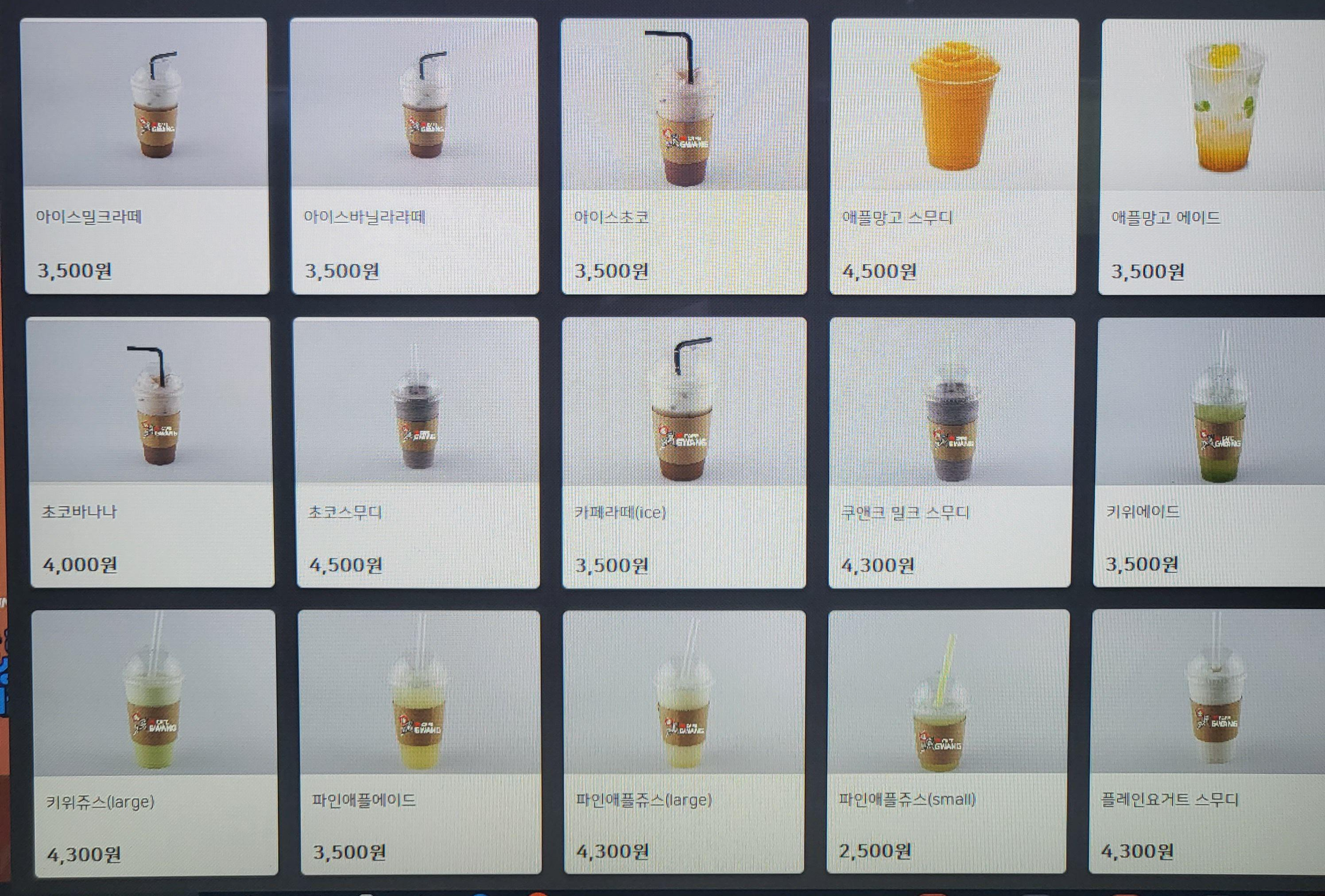 제가 가장 즐겨 먹는 건 아이스 아메리카노예요. 금액은 2500원으로, 더리터 아이스아메리카노 적은 사이즈 1800원이랑 비교했을 때, 크게 비싼 금액은 아닌 것 같아요. 그리고 파인애플주스도 먹어봤는데 엄청 맛있었어요. 그냥 마트에 파는 포도주스, 오렌지주스 같은 건 아니었어요.