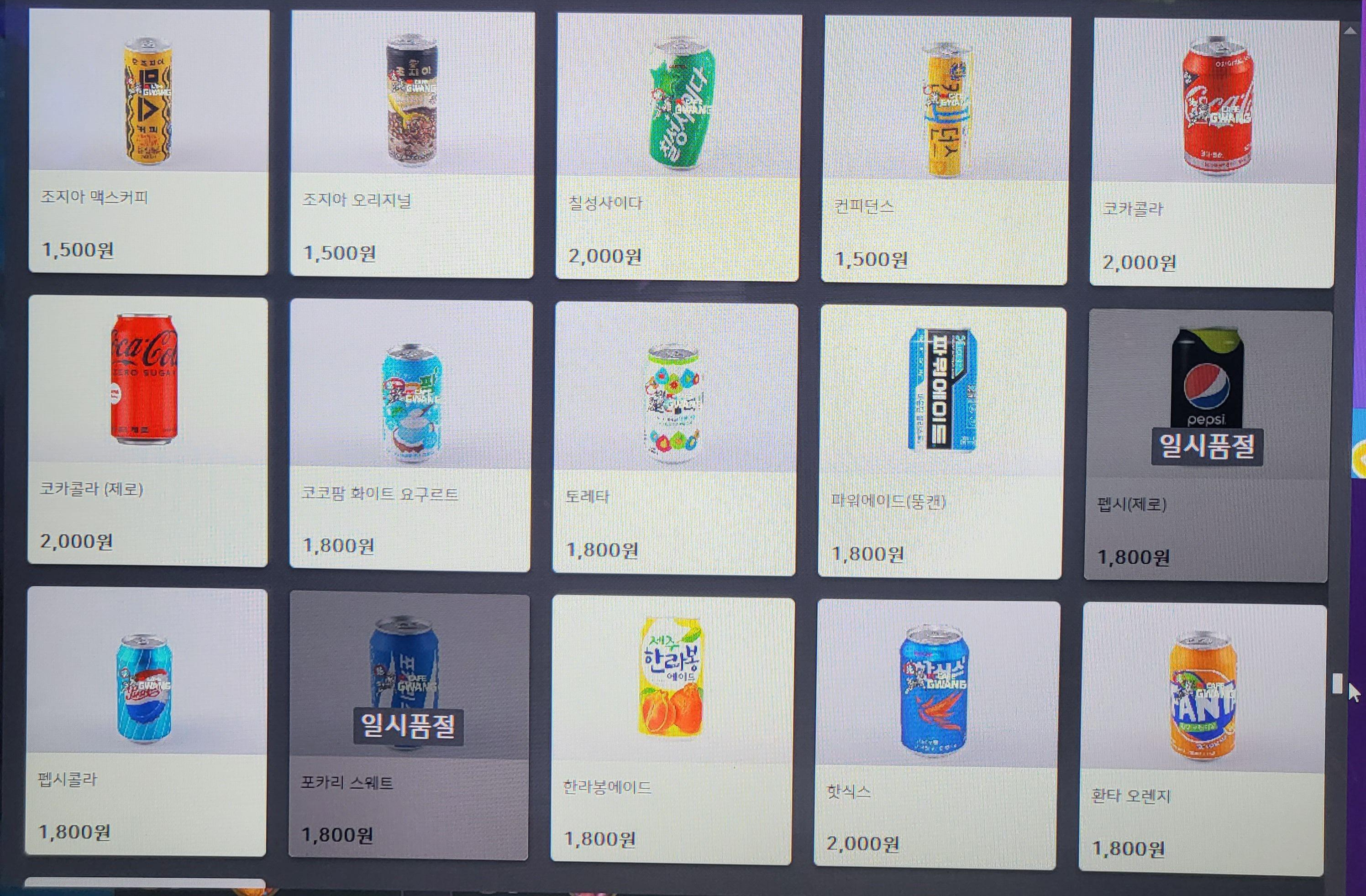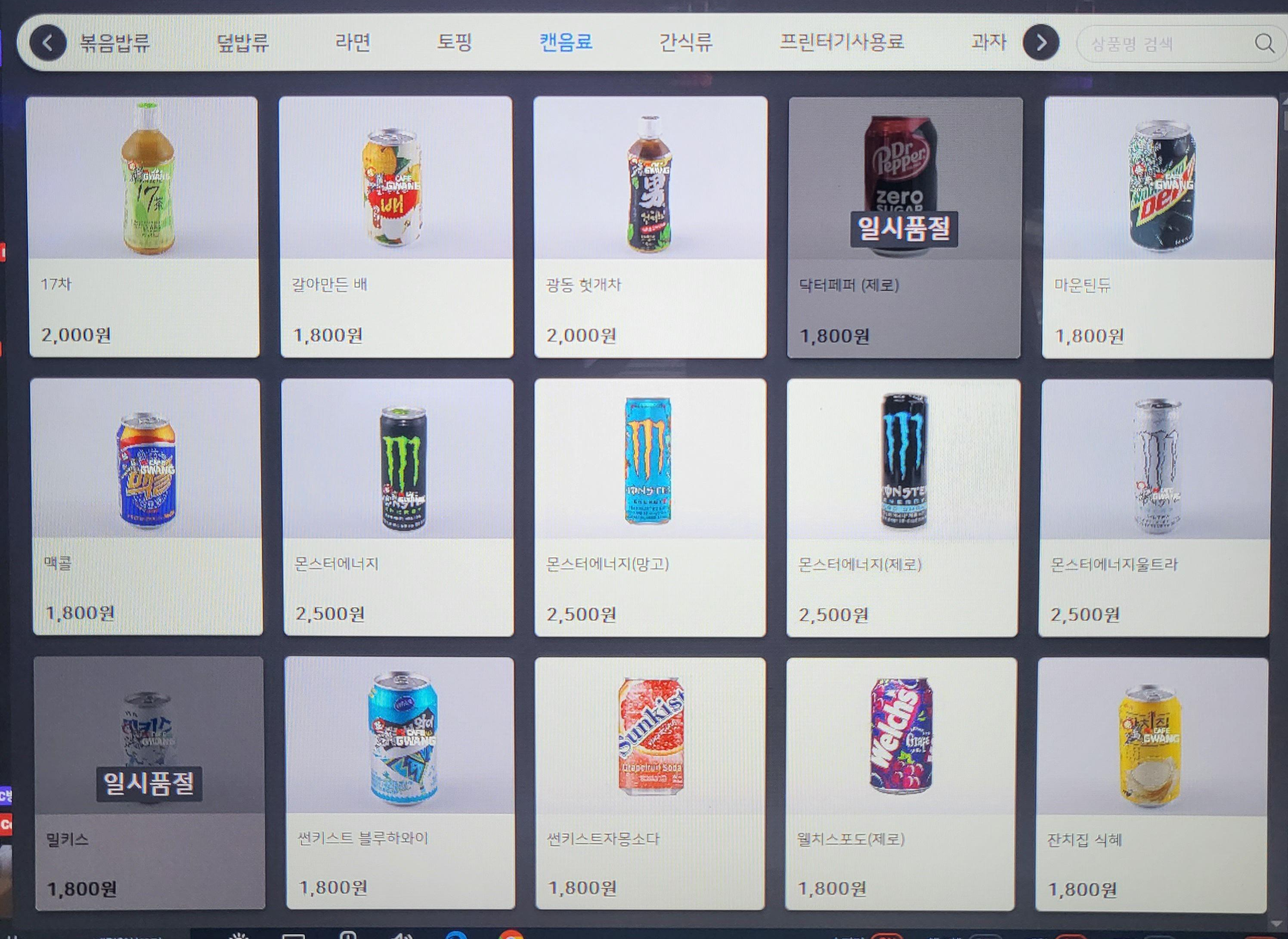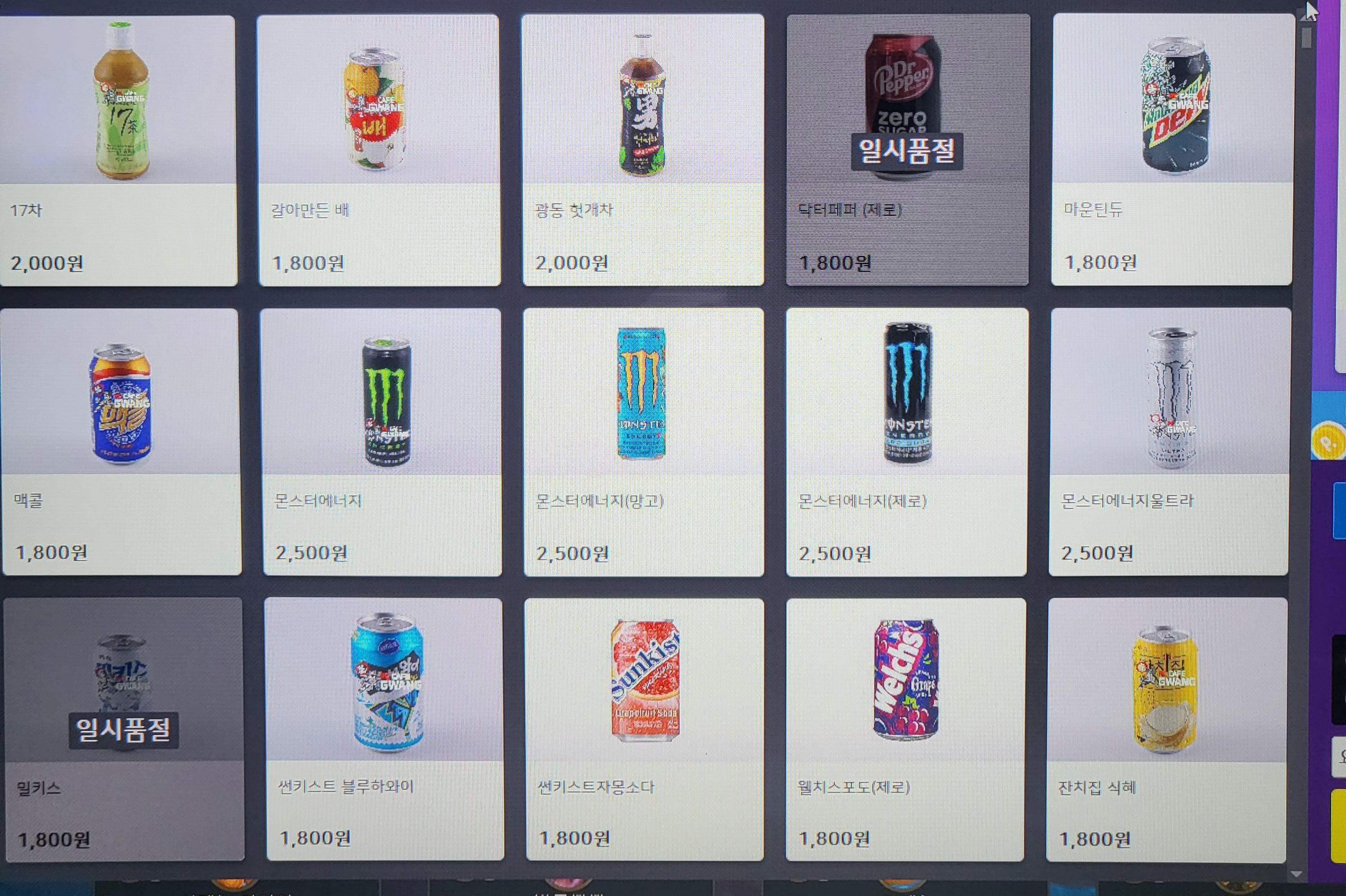 카페류 말고 캔, 페트 음료도 팔고 있어요. 몬스터도 있고, 요즘 핫한 제로콜라까지 있답니다.