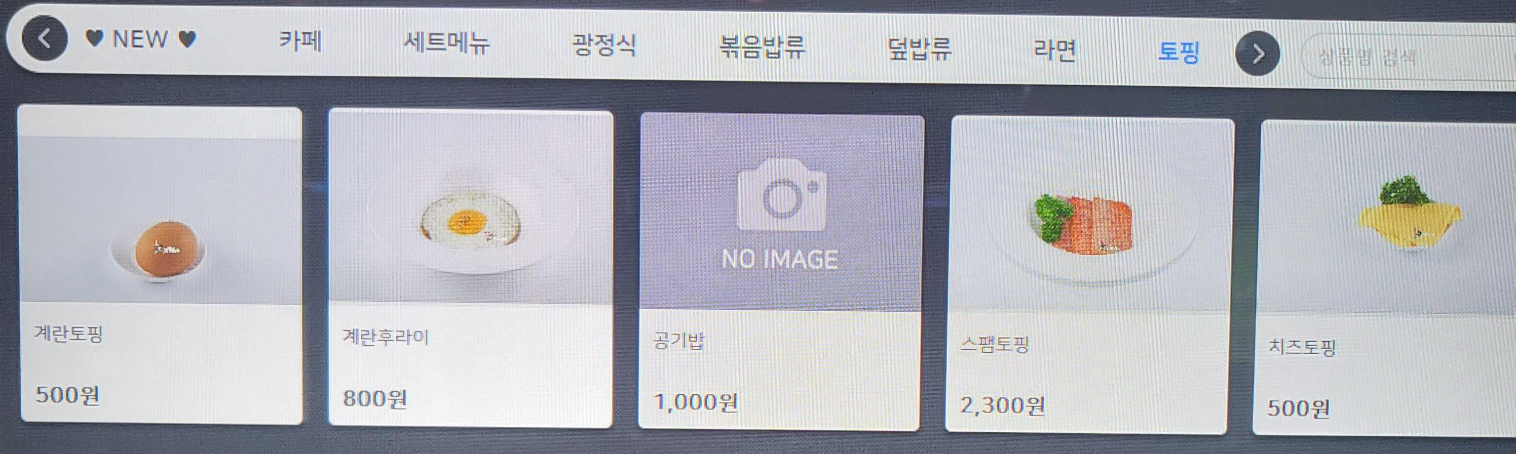 먹거리 주문 시에 토핑도 추가할 수 있는데, 라면에 계란을 추가하면 500원만 추가하면 돼요. 공깃밥도 천 원으로 저는 적당한 가격인 것 같아요. 토핑도 실패할만한 건 없고, 딱 맛있도 토핑의 정석인 치즈, 스팸, 계란이 있네요.
