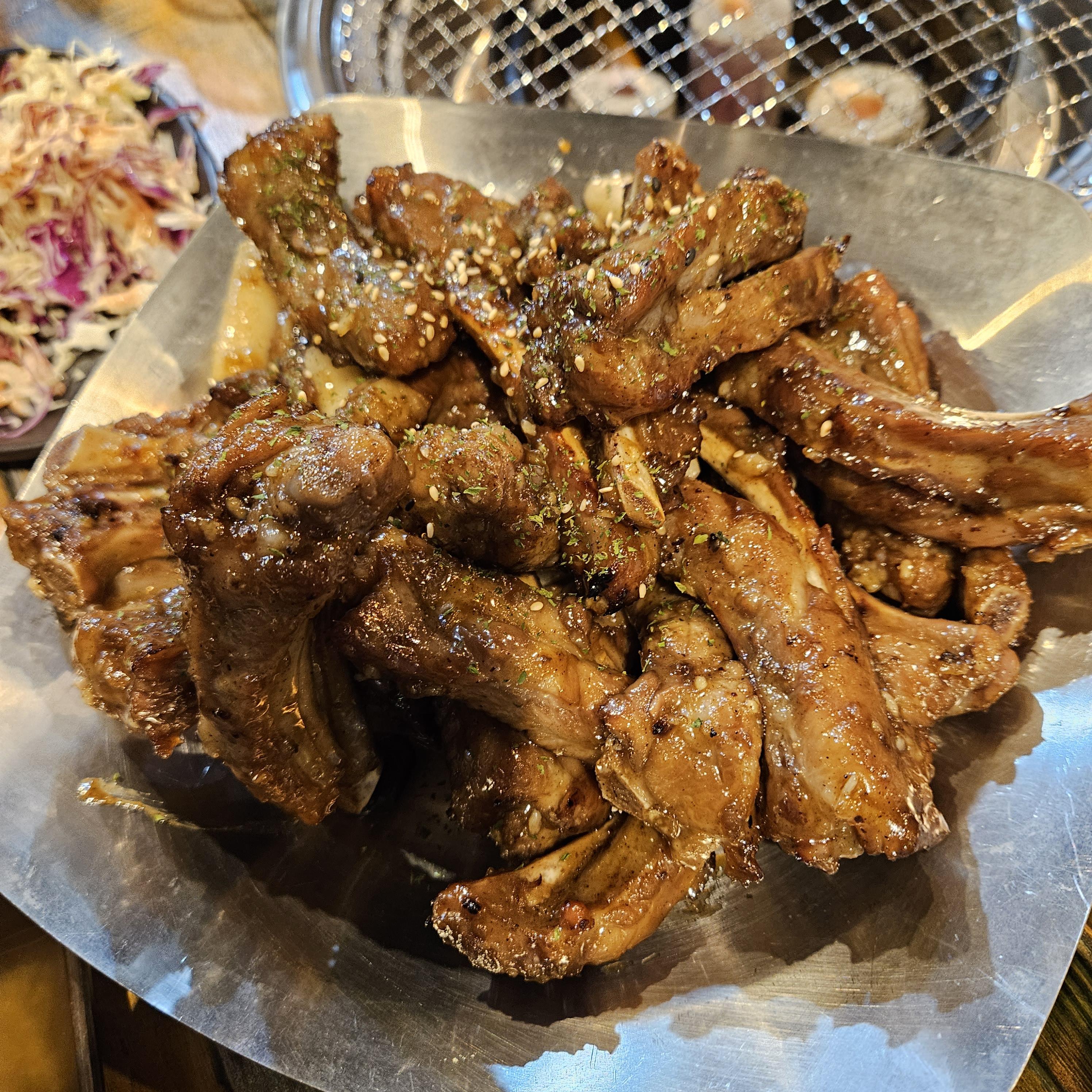 쪽갈비는 한번 초벌 되어 나와서 더 좋았어요. 테이블에서 조금 더 익힌 뒤에 금방 먹을 수 있었어요.