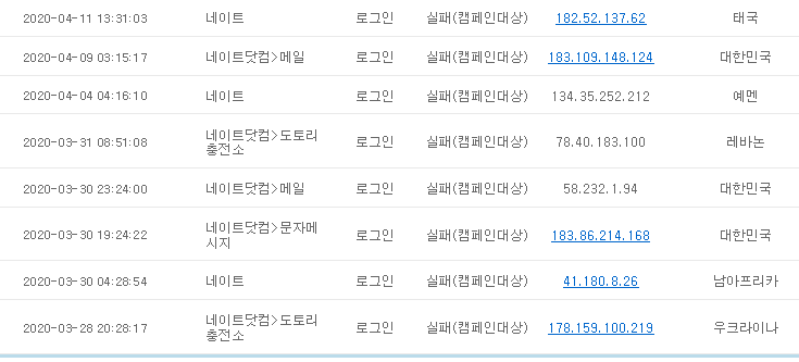 제 네이트 아이디는 각 국에서 매주 로그인을 시도했었더군요...으으