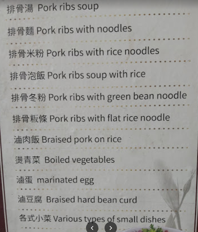 메뉴 : 러우저우, 홍샤오러우, 볶음밥, 족발국수 등 70NTD ~ 120NTD (3,150원 ~ 5,400원)