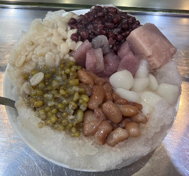 기타 : 여덟가지 보물이 들어있는 빙수 (팔보빙), 얼음 위 설탕물, 녹두 등 각종 콩과 타로, 팥 등 곡물류 팥빙수. 100년전 빙수라고 함. 과일빙수, 망고빙수랑은 다른 느낌 (근데 망고빙수도 판다), 재료 선택도 되는 것 같음