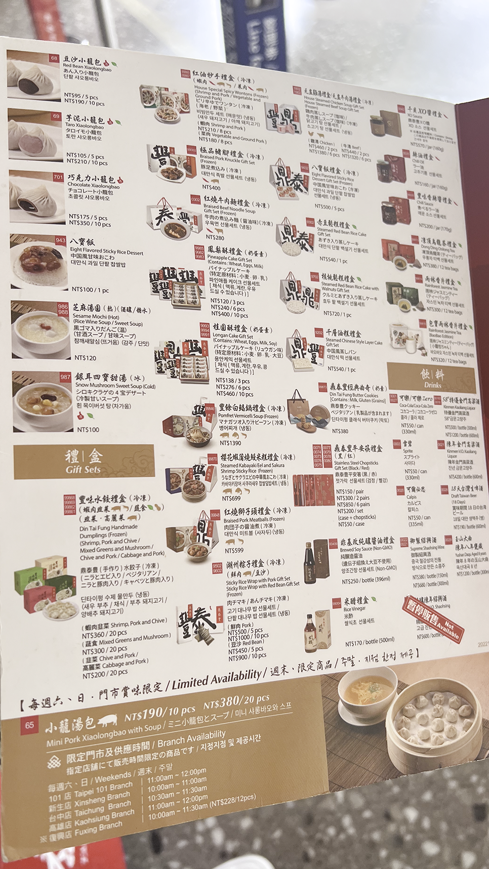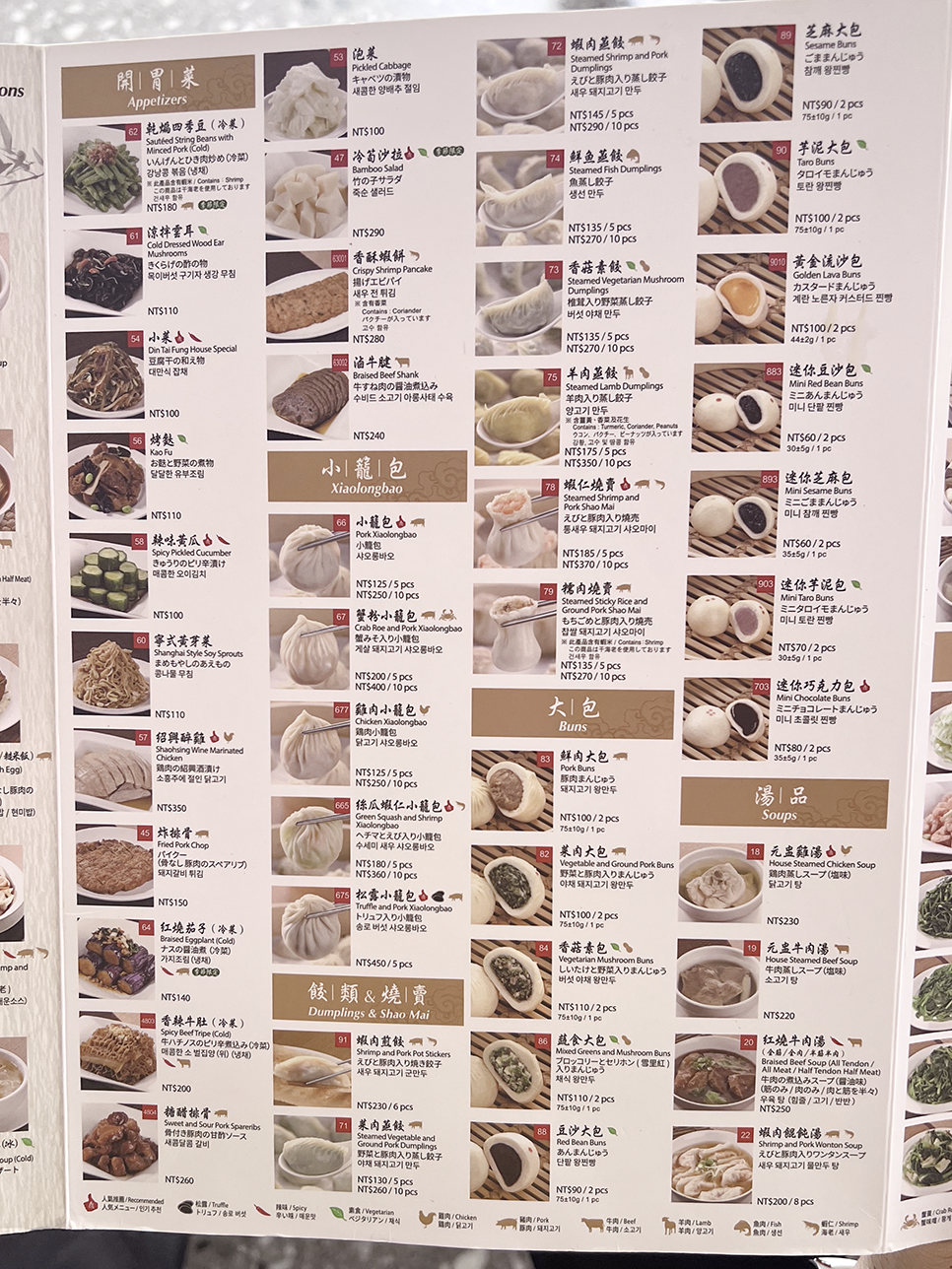 | 샤오롱바오 4개 5개 125NTD (25NTD) 100NTD |