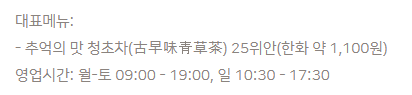영업시간 : 오전 9시 ~ 오후 3시