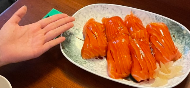 메뉴 : 연어초밥(6ps) 430NTD (19,350원) 오징어초밥(6ps) 400NTD (18,000원) 닭꼬치(2ea) 70NTD (3,150원)