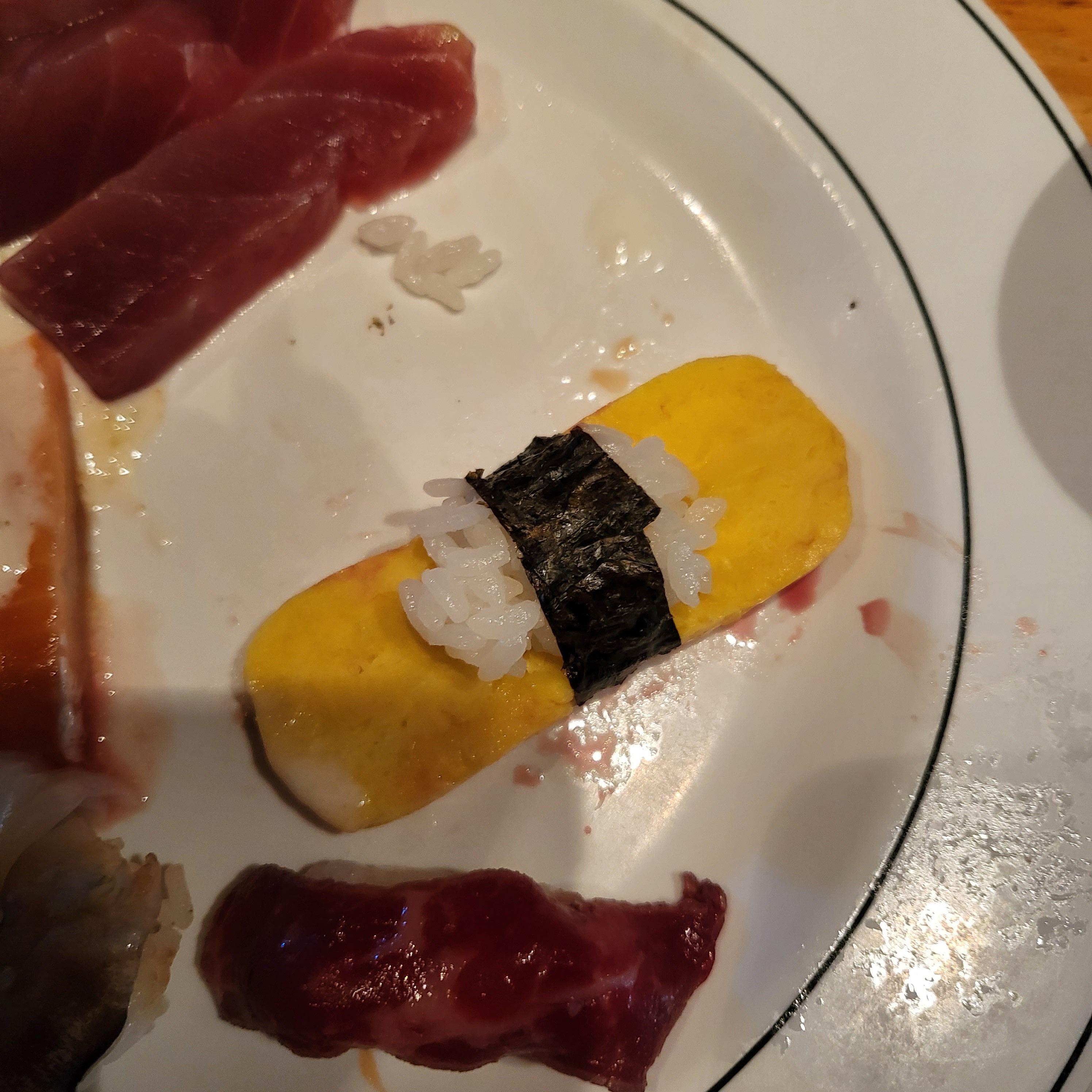 계란 초밥에 밥 양 좀 보세요. 손톱만큼 들어가 있음. 합격ㅋㅋㅋ