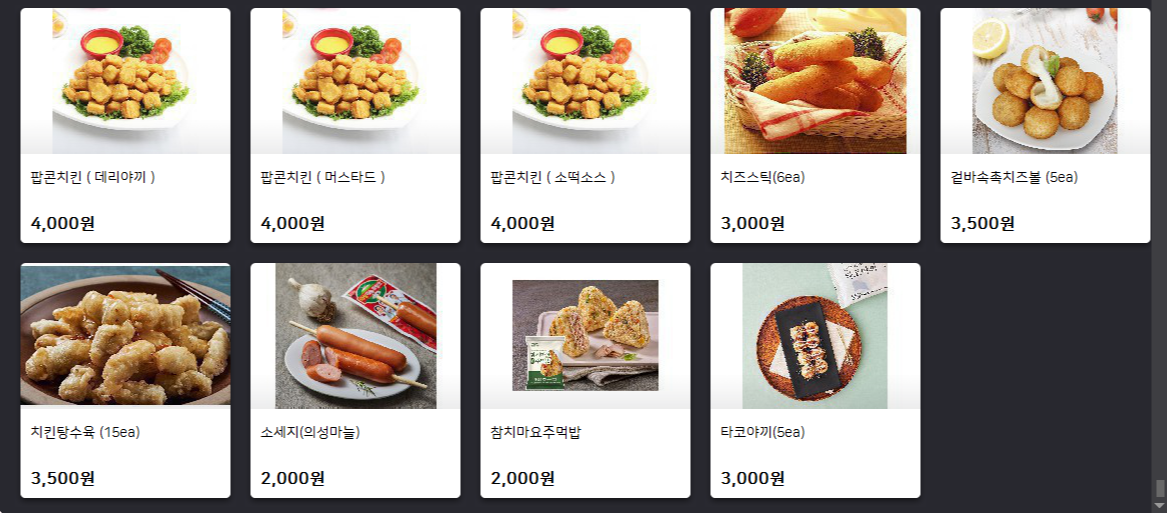 틈새라면과 주먹밥, 아메리카노, 핫도그, 햄버거, 짜파구리와 나 홀로 세트 (짜파+탕수+프라이) 등을 주문했어요.
