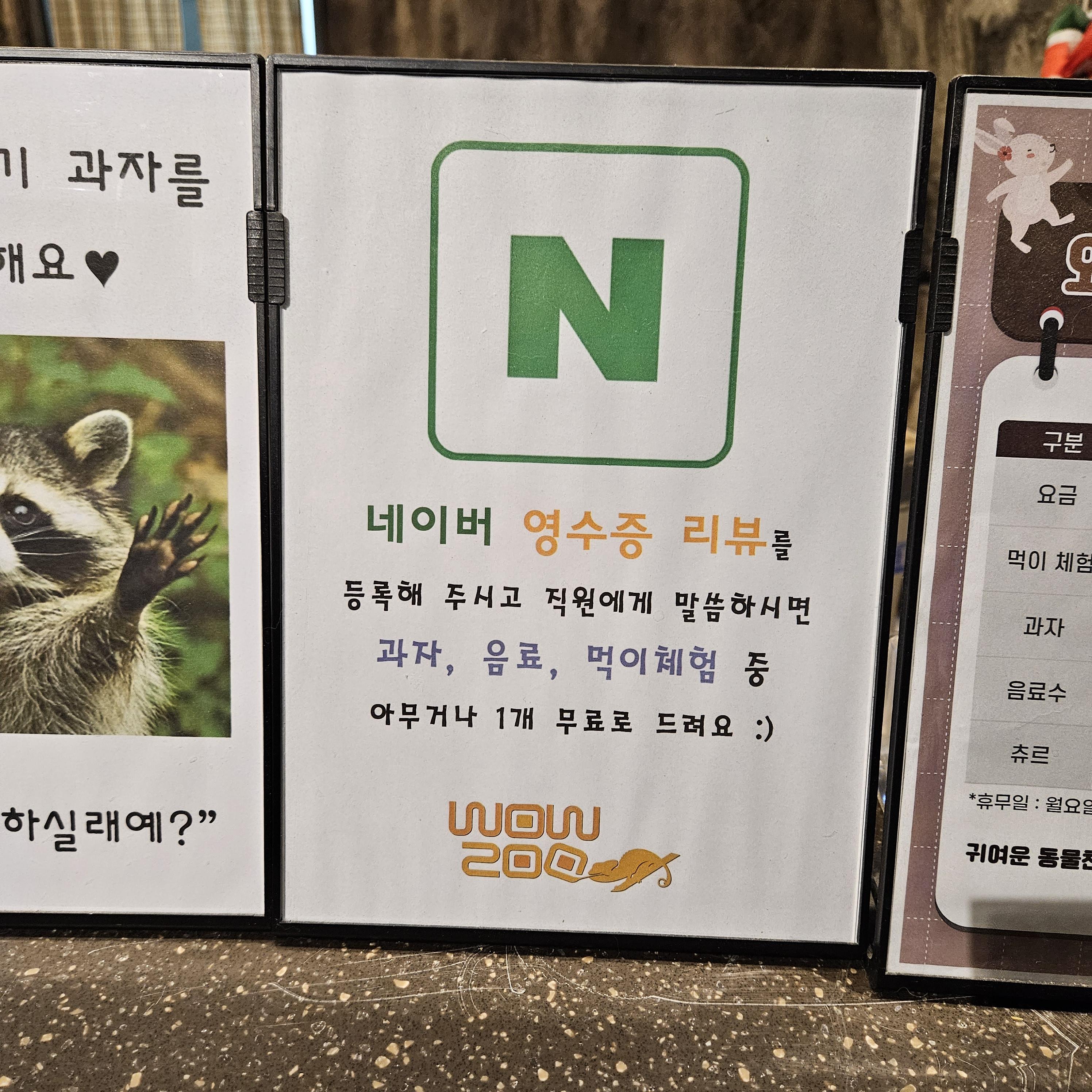 네이버에 영수증 리뷰를 하면 먹이체험과 과자, 음료수 중 1개를 무료로 준다기에 영수증 리뷰를 하고 저는 먹이체험을 무료로 했어요.