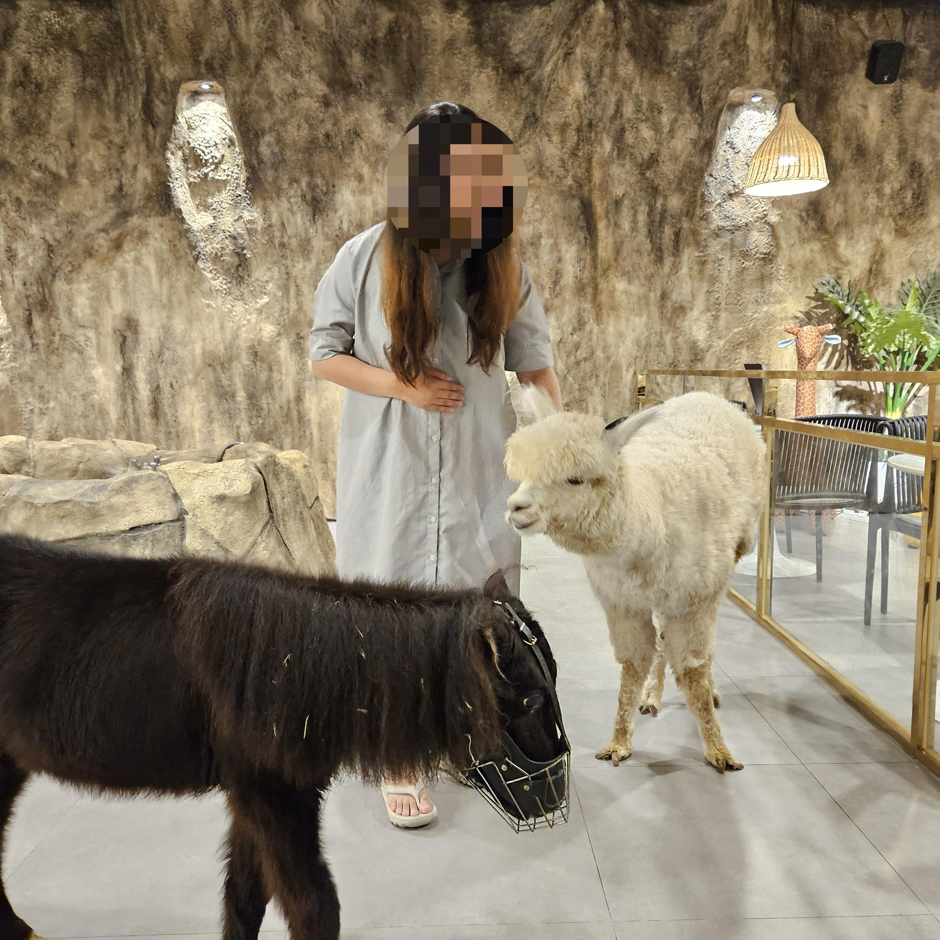 여기 안에서 제일 큰 동물은 라마인지 알파카인지 헷갈리나 알파카 같은 아이였어요.