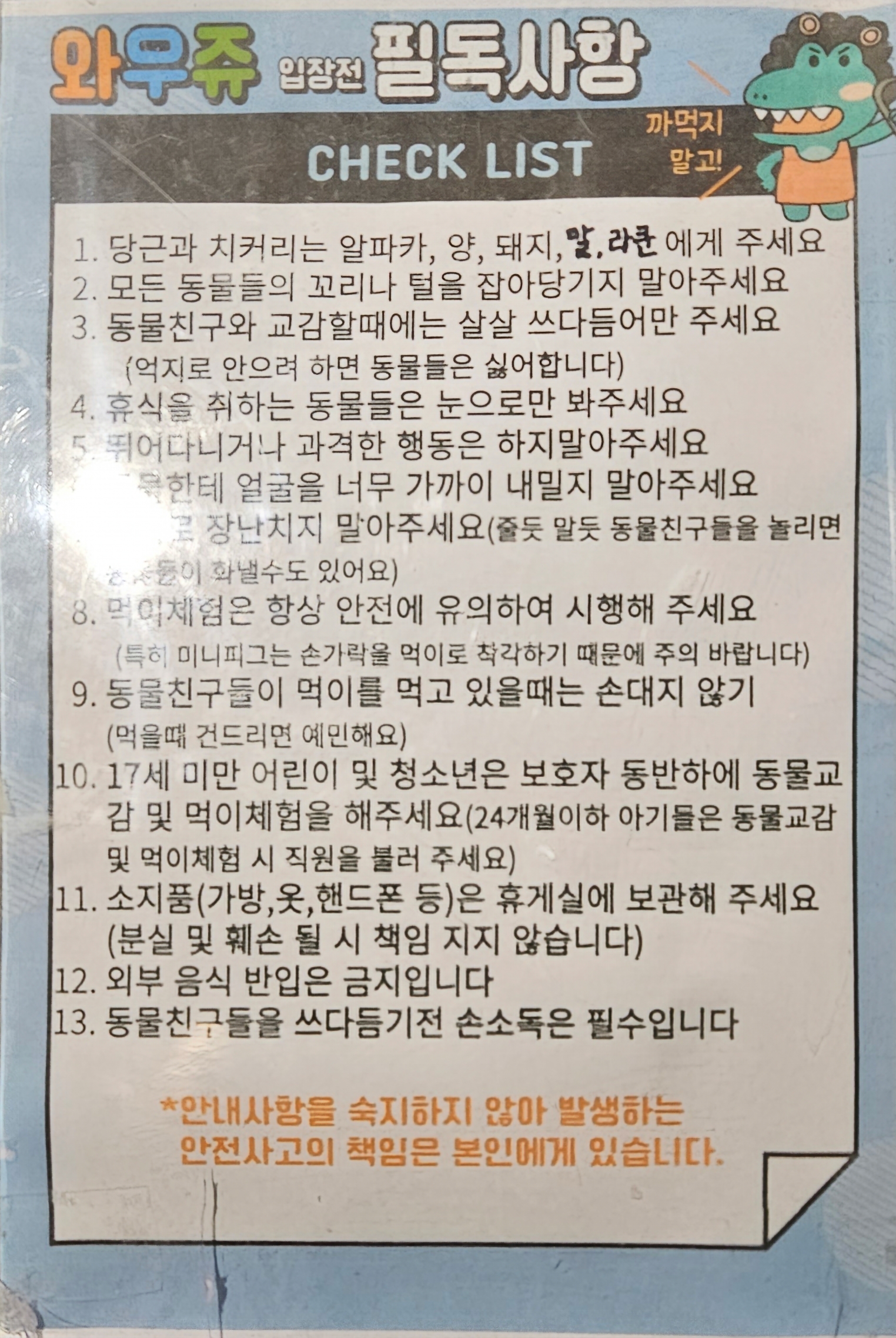 와우쥬에서는 약 1시간 정도 있었어요. 열심히 관람하고 사진 찍고 놀다 보니 1시간이 금방 가더라고요.