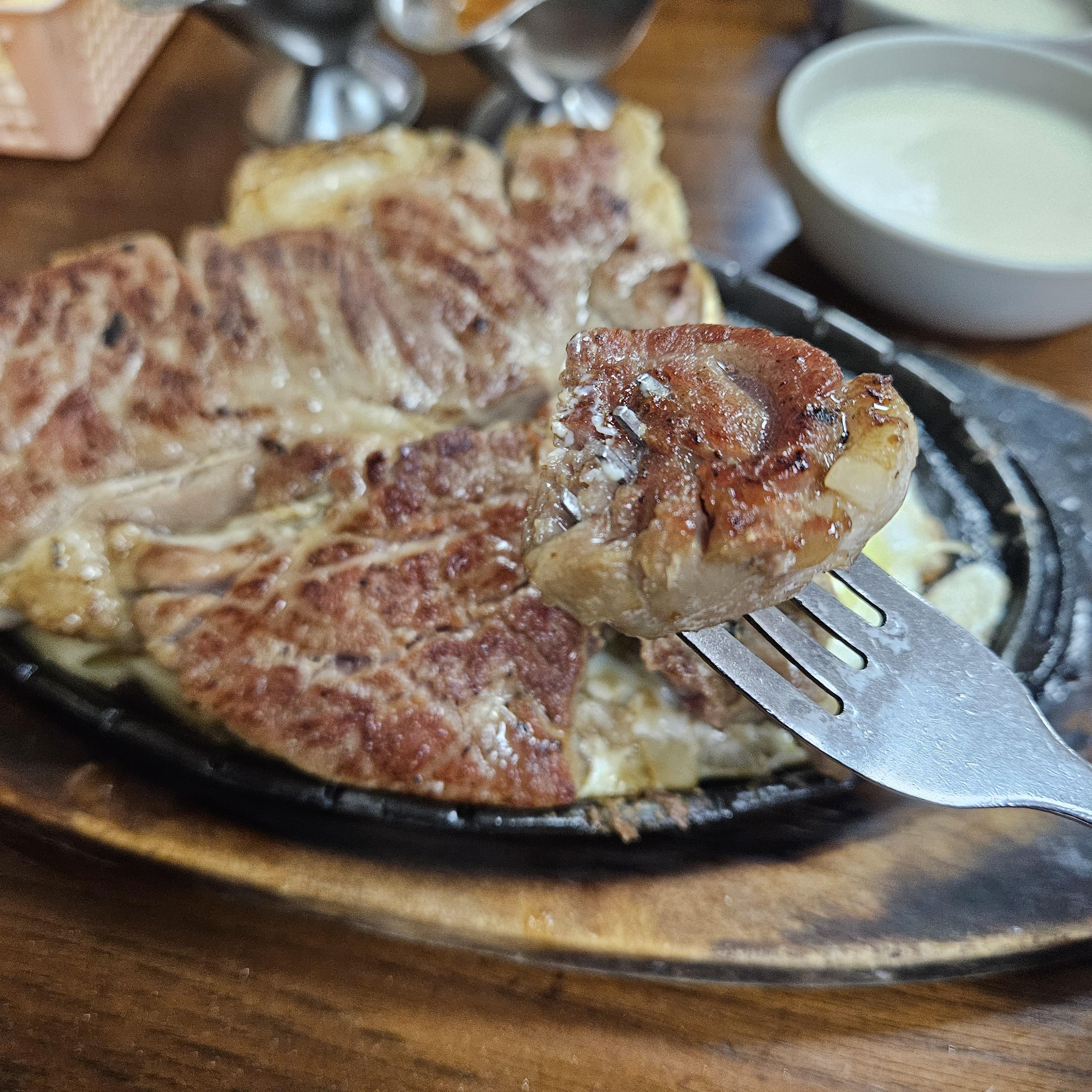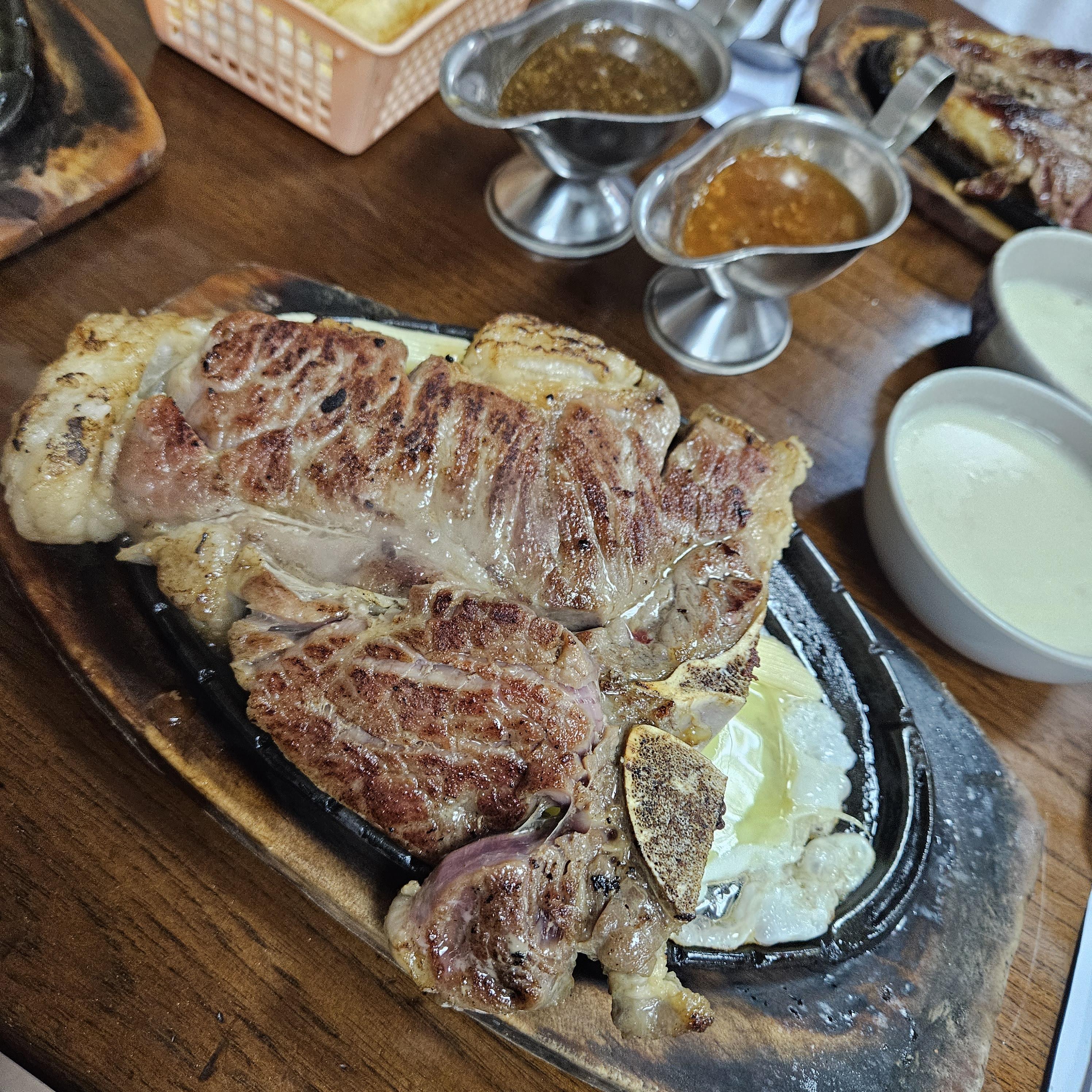 플랫 아이언 스테이크 2개랑 티본스테이크 1개랑 다른 어떤 거 하나시켰는데 그게 뭔지를 모르겠네요.
