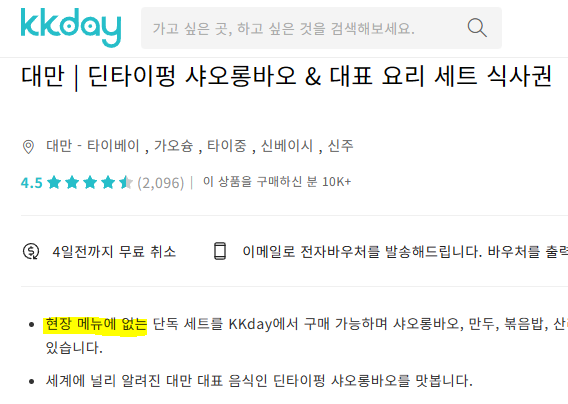 딘타이펑은 예약이 안된다고 해요. 근데 'kkday'라는 곳에서 예약과 음식 세트를 미리 구매할 수 있더라고요.