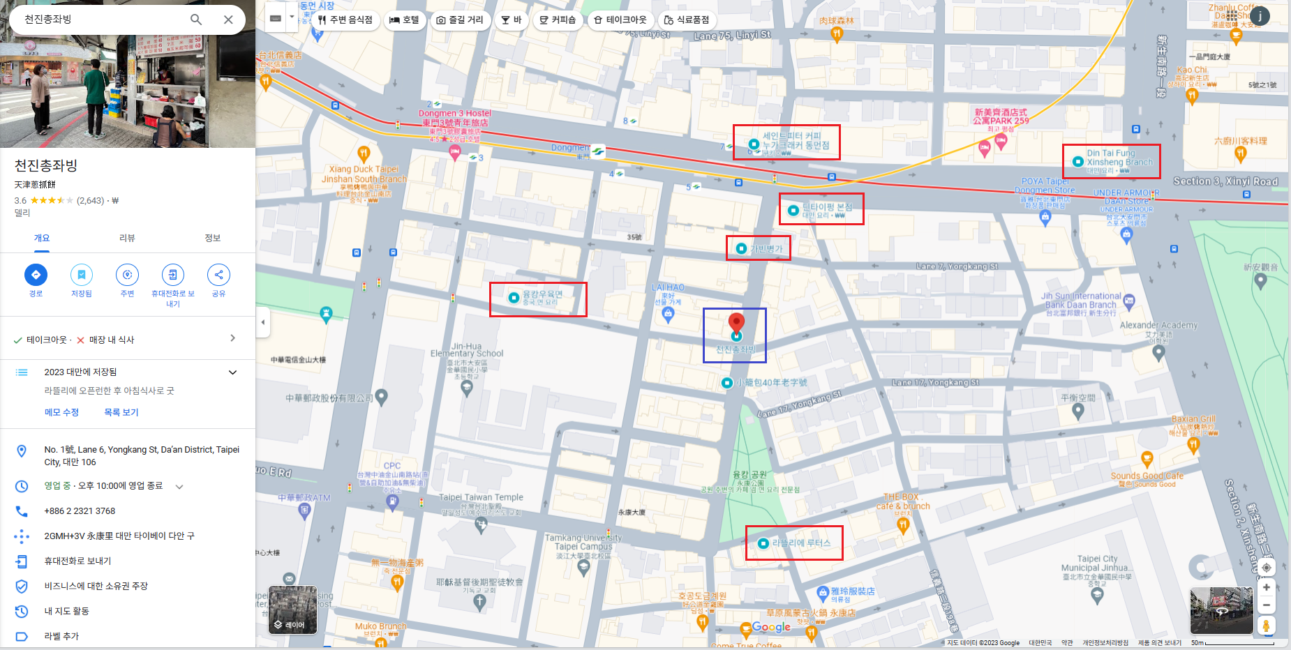 주소 : No. 1號, Lane 6, Yongkang St, Da’an District, Taipei City, 대만 106