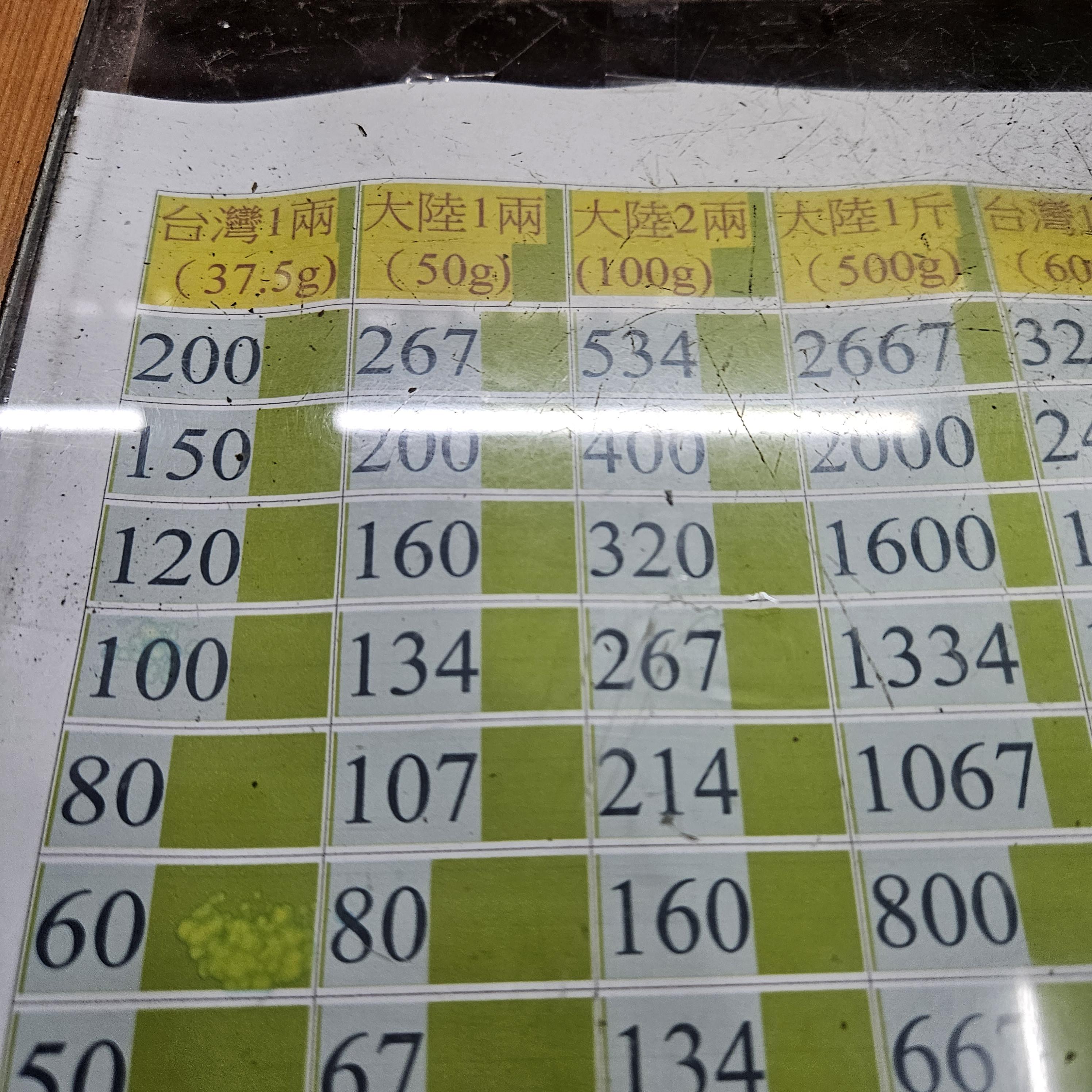 우롱차 금액은 50g에 200 NTD였어요. 100g은 400 NTD.