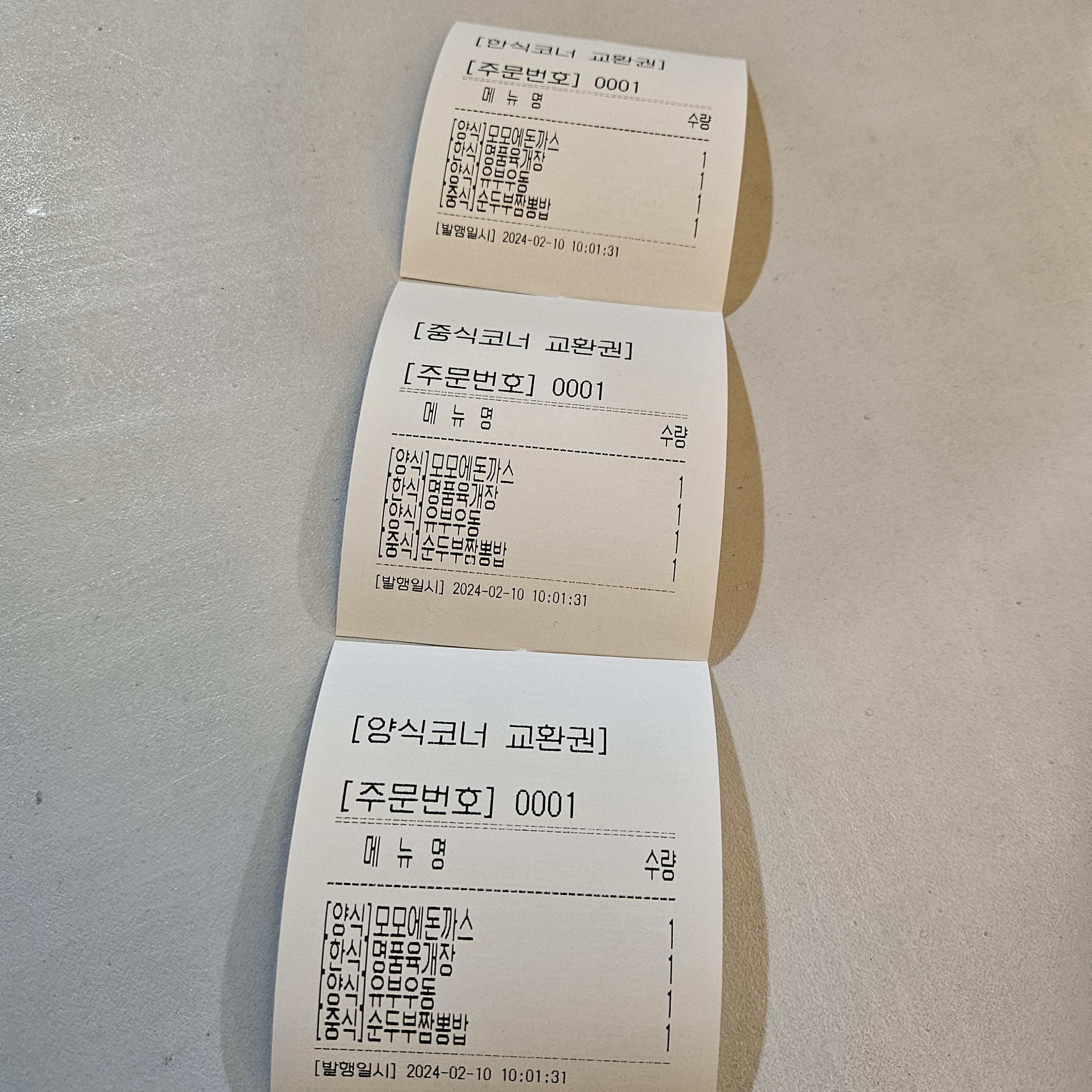 돈가스와 육개장, 우동, 짬뽕밥을 주문해서 총금액은 40,800원이 나왔어요.