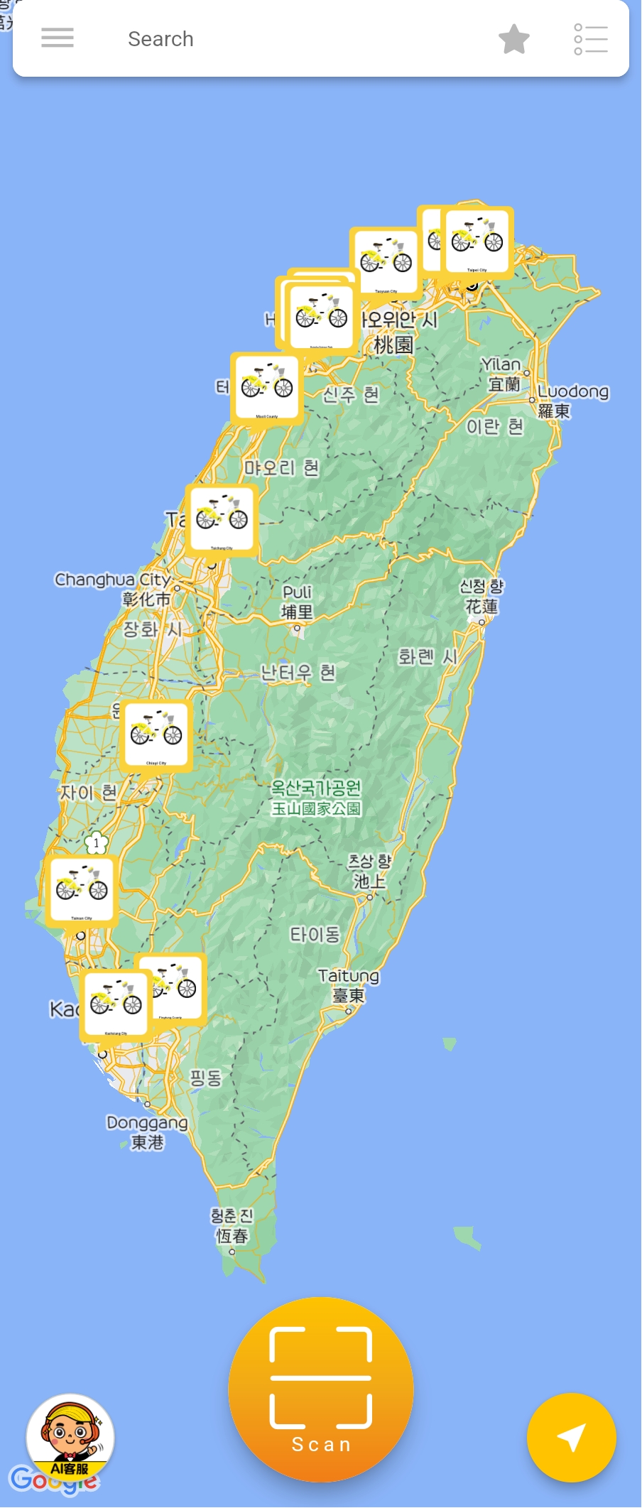 대만에 있는 유바이크 위치를 한눈에 보실 수 있어요.