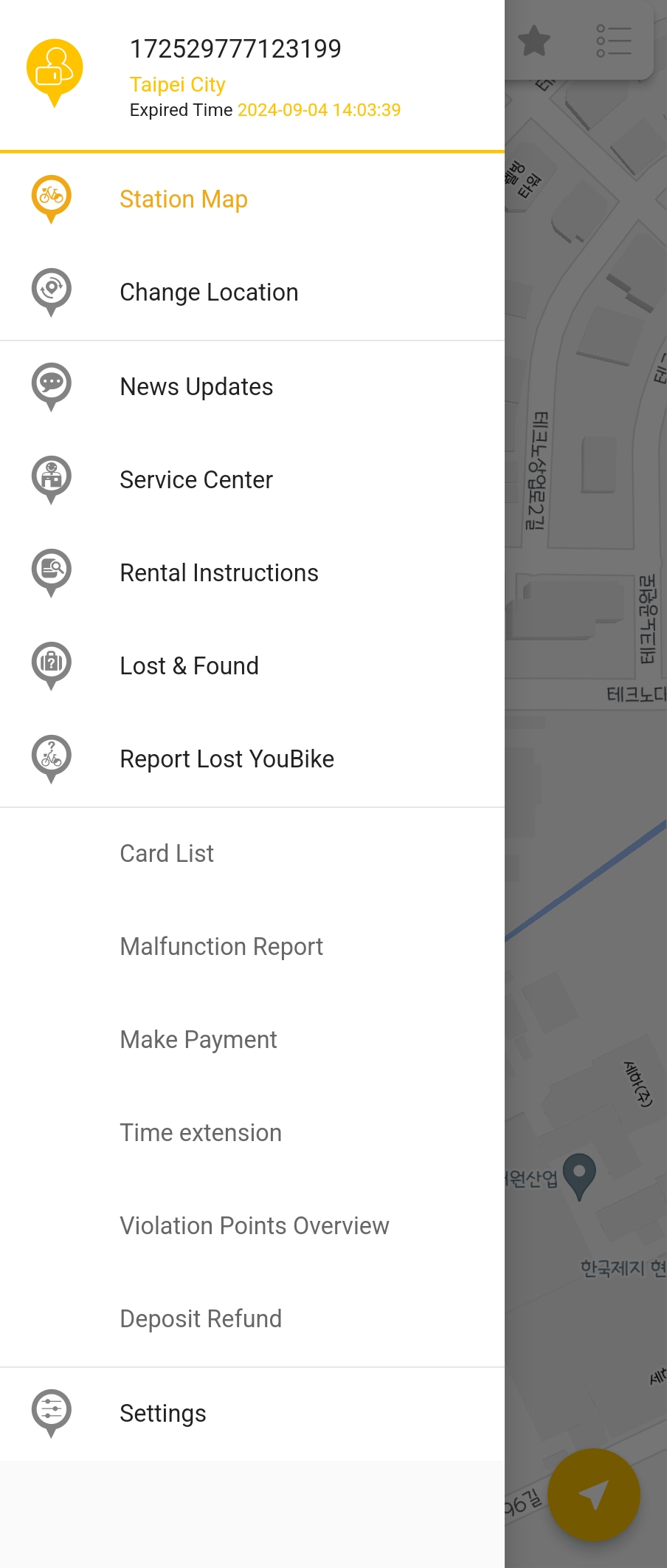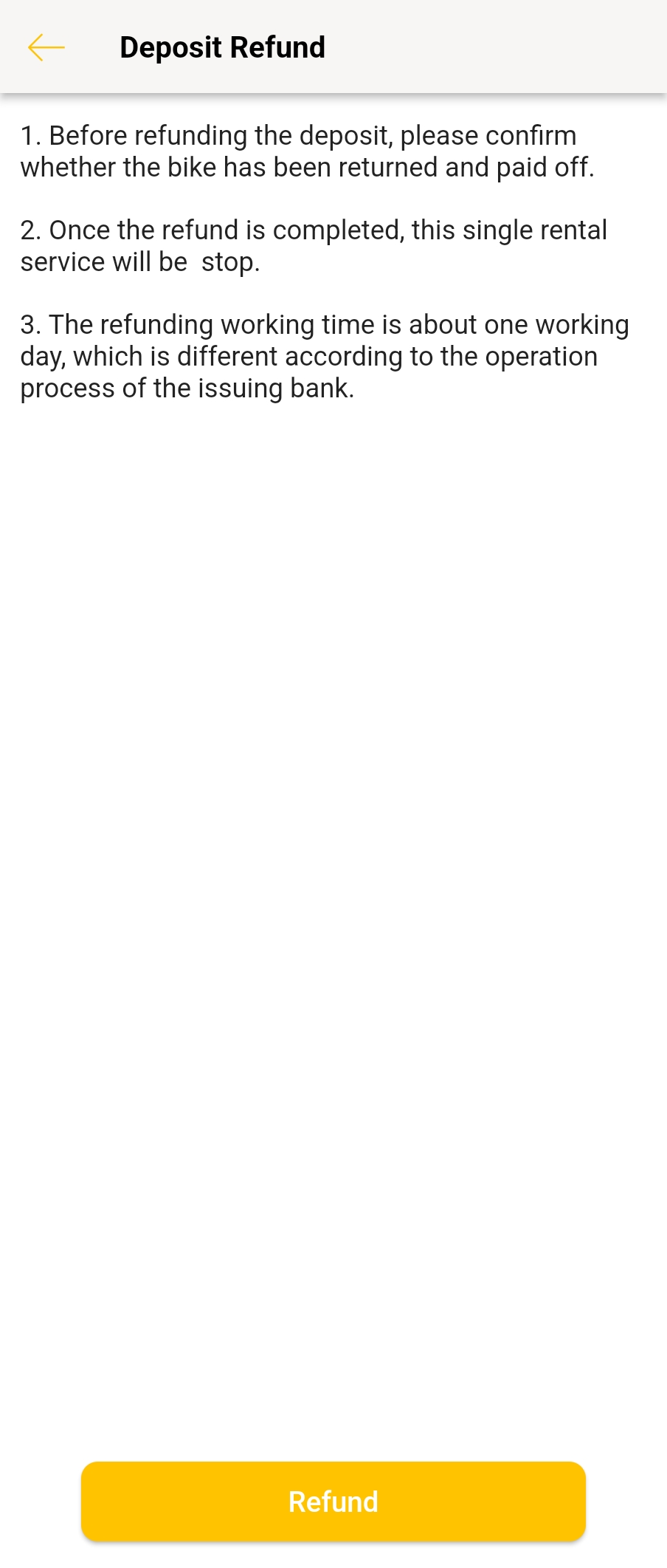 유바이크 이용을 다 하신 후에는 하단에 있는 'Deposit Refund'를 눌러주면 보증금 3000 TWD가 반환됩니다.