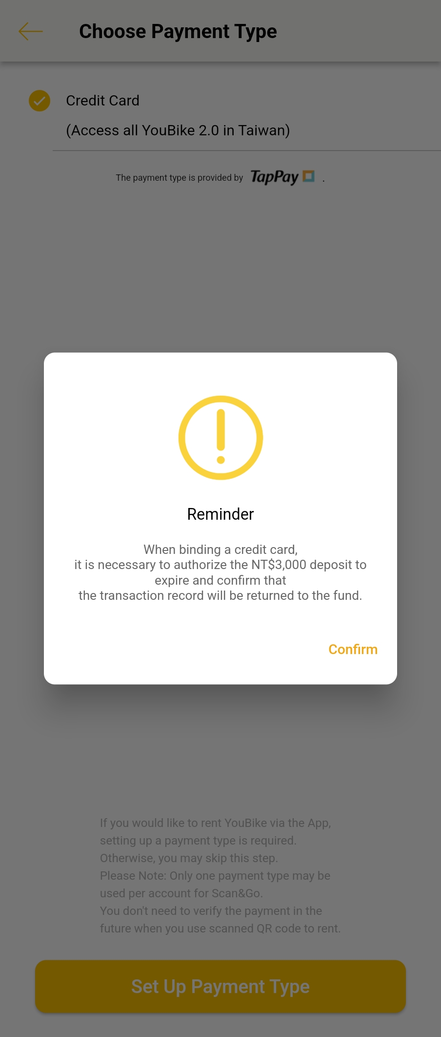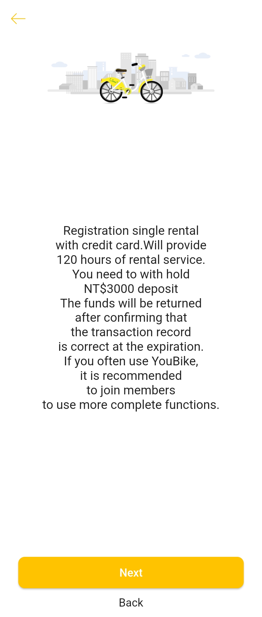 대만에 번호가 있으신 분은 간단하게 이지카드로 등록이 가능한데, 저희 같은 관광객은 번호나 이지카드가 없는 경우가 흔하죠. 그래서 비회원느낌으로 가입하여 이용하는 방법도 있답니다. 결제할 신용카드만 있으면 가능해요. 신용카드로 이용한 요금과 3000 TWD의 보증금이 빠져나간답니다.