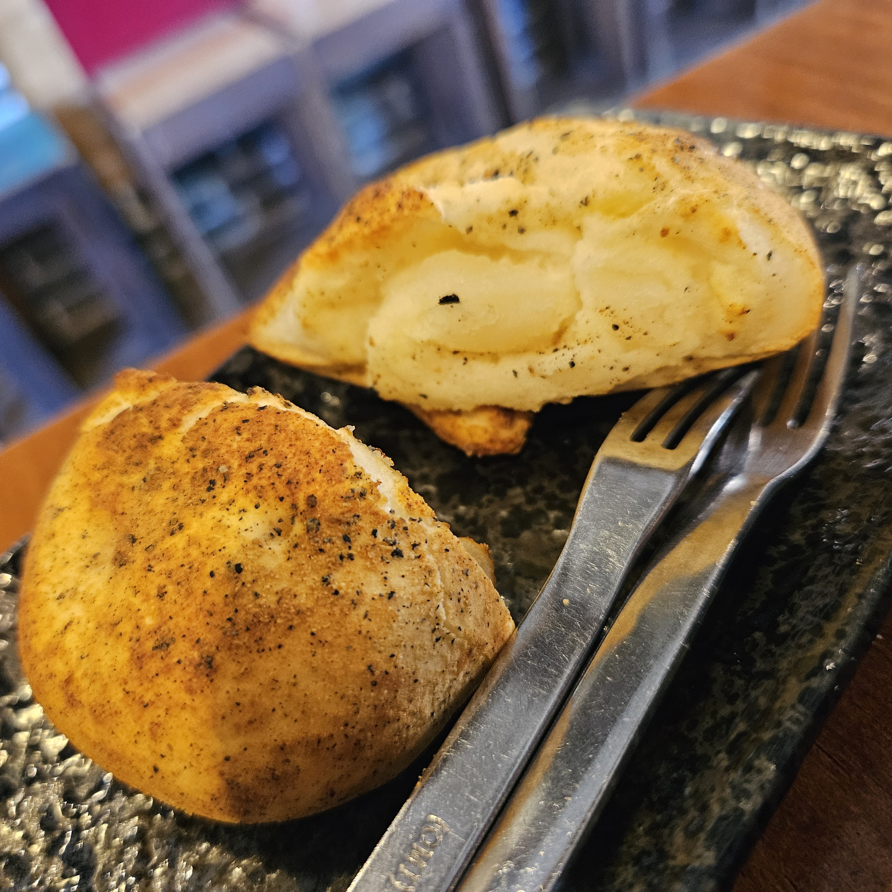 사진은 감자빵 하나를 제가 직접 반으로 자른 거예요.