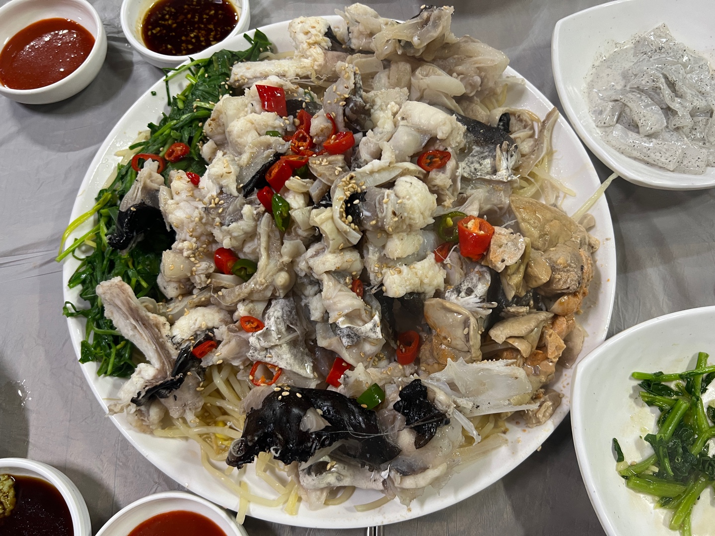 대망의 아구수육! 소자 맞냐고요 🤗🤗 양 좀 보세요. 엄청 많지 않나요? 3명이서 먹기에 딱 좋은 사이즈 같아요.