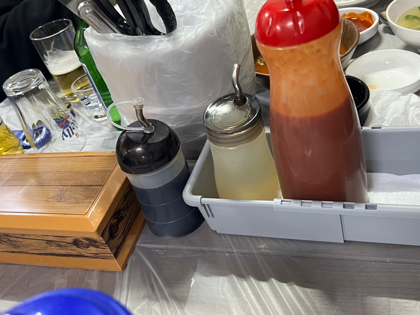 초장이랑 간장 등 찍어먹을 수 있는 양념이 있었는데, 저는 간장에 찍어먹는 게 제일 맛있었어요.