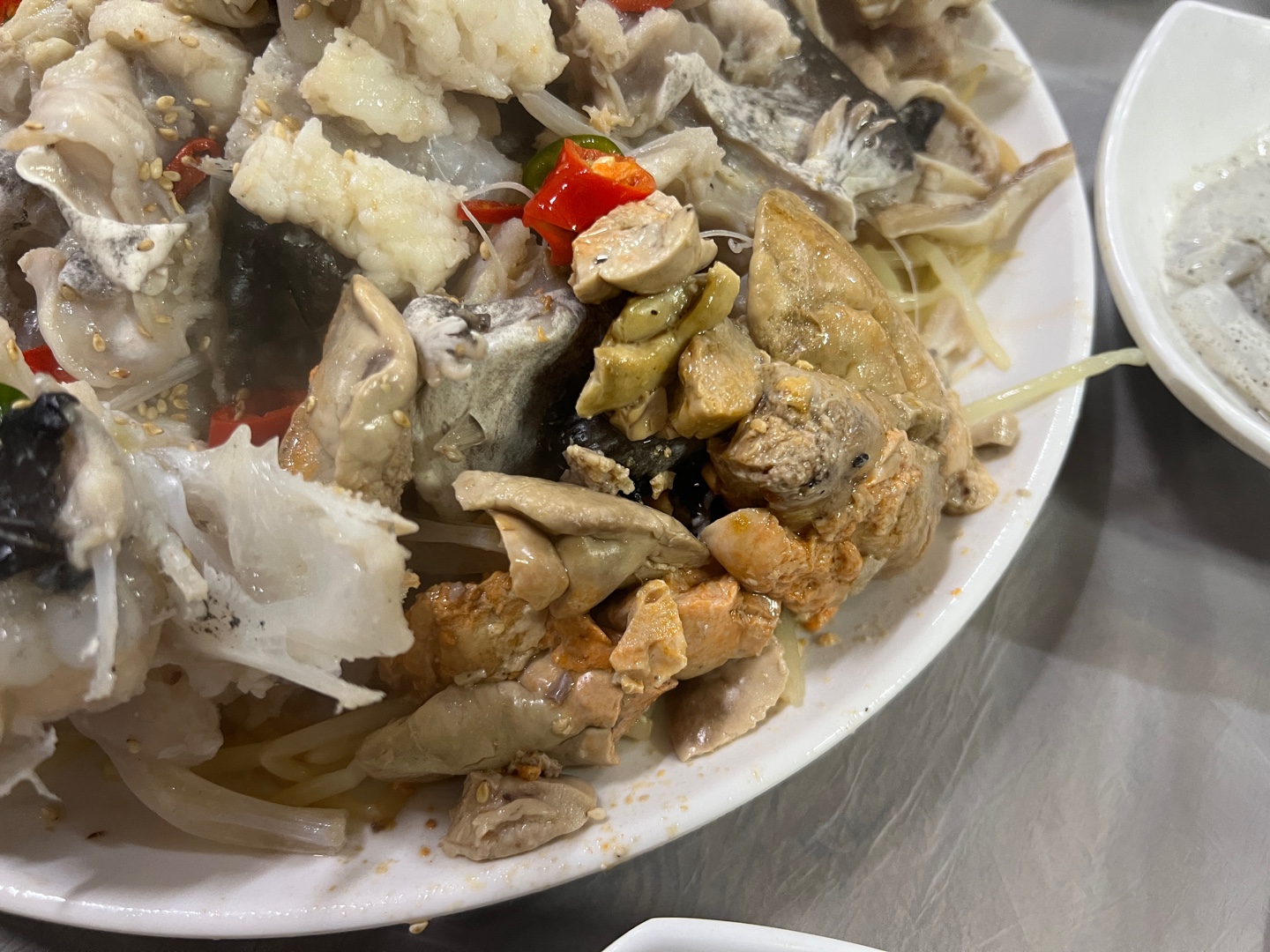 아구 살코기 좀 보세요. 😆😆 탱글탱글하고, 부드러워서 너무 맛있었어요. 흔히 먹는 아귀찜이랑은 또 다른 식감과 맛이었어요. 소주랑 맥주도 같이 시켜 먹었는데 술이 그냥 술술~