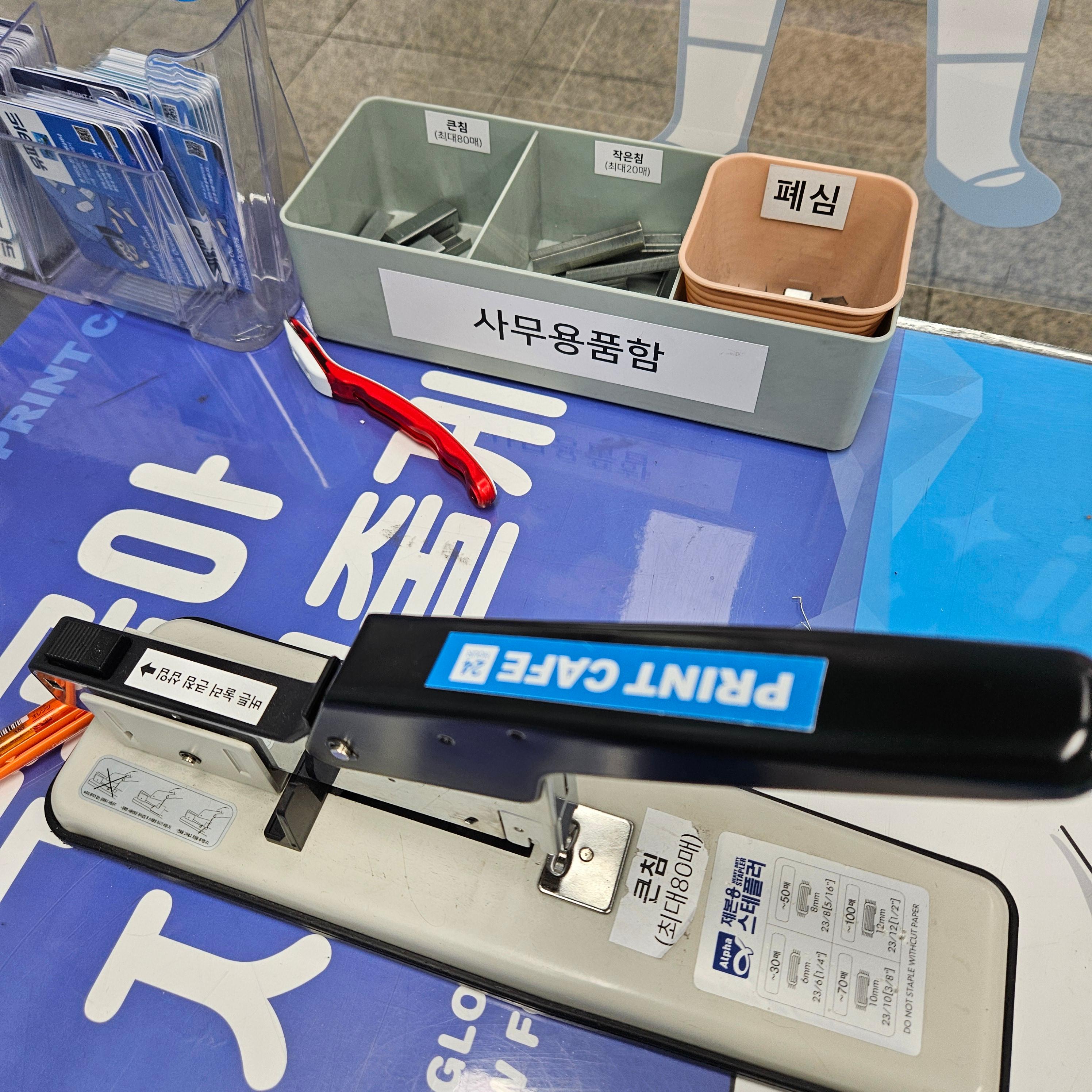 또 카페에서 스테이플러도 제공하고 있어서 인쇄 후 정리해서 가져갈 수 있어요.